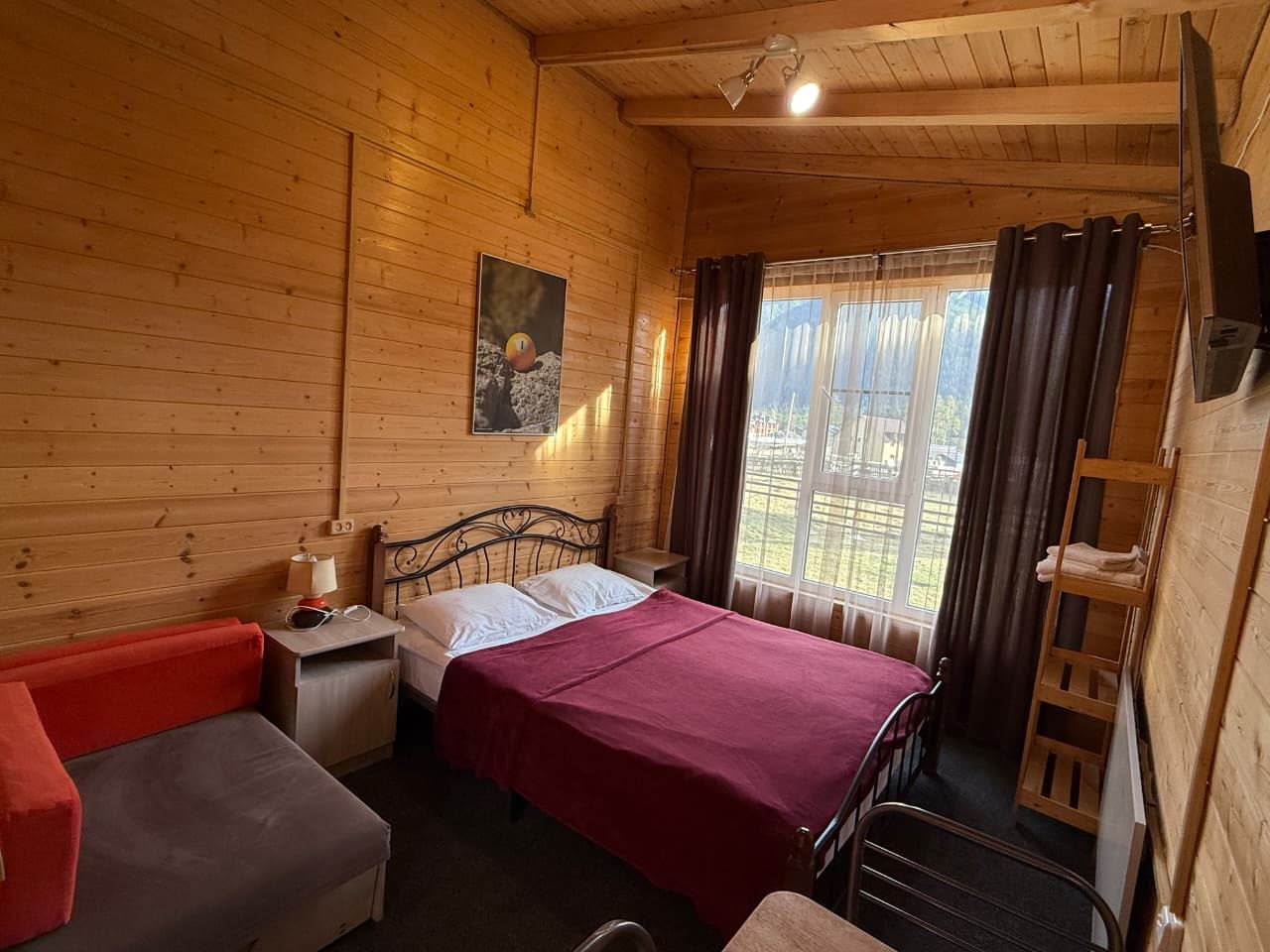 Для проживания предлагаются 2х местные номера с видом на горы. В каждом из них есть все необходимое для комфортного отдыха: двуспальная кровать, телевизор, эл.чайник, душ, туалет. Ковровое покрытие в спальной зоне и теплый пол в прихожей и санузле. Только два номера. Максимальная загрузка 6 человек.