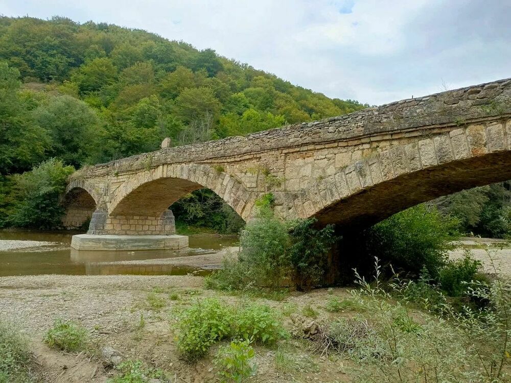 Точные координаты старого моста через реку Дах: 44.236874, 40.205353.