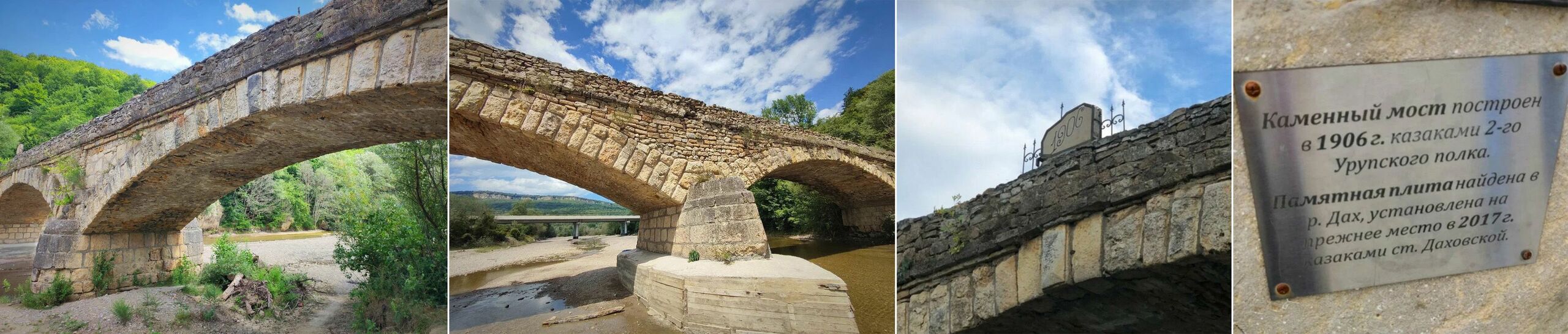 Каменный мост, построенный в 1906 году, стал результатом труда казаков 2-го Урупского полка, отправленных в Даховскую на принудительные работы после восстания 1905 года в Екатеринодаре. Местные жители и церковь оказали значительную помощь в строительстве.