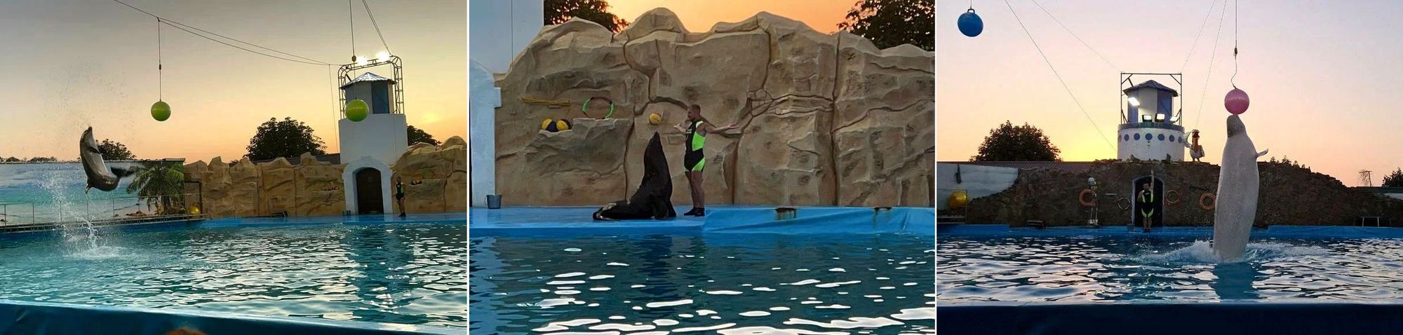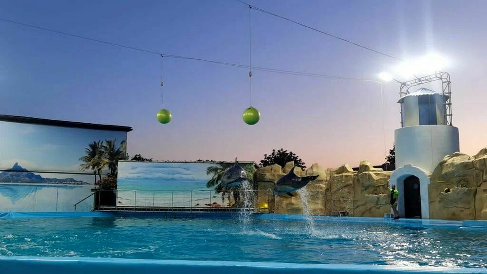 Дельфинарий работает в сезон с мая по сентябрь, а на зиму закрывается.