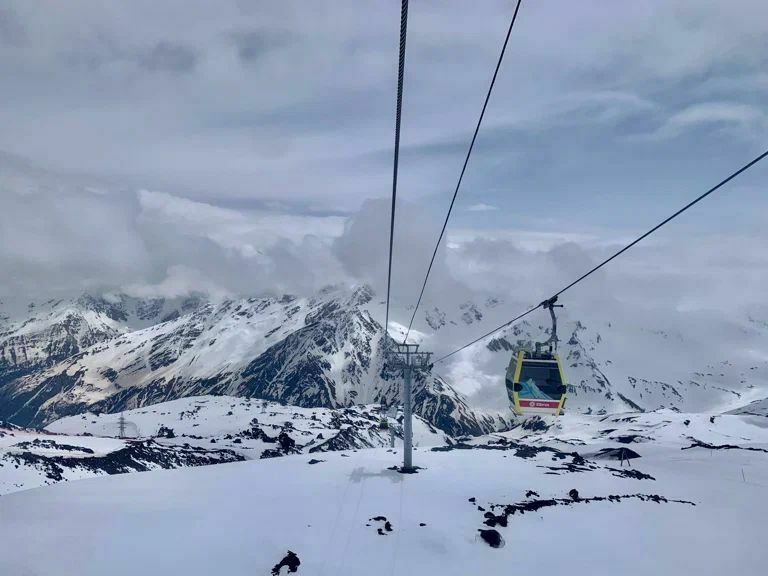 Канатная дорога на южном склоне Эльбруса облегчает восхождение на эту двуглавую гору летом и предоставляет возможность для катания на лыжах или сноуборде зимой. Система состоит из трёх очередей, которые поднимают пассажиров с 2350 до впечатляющих 3847 метров, что является рекордной высотой в России.