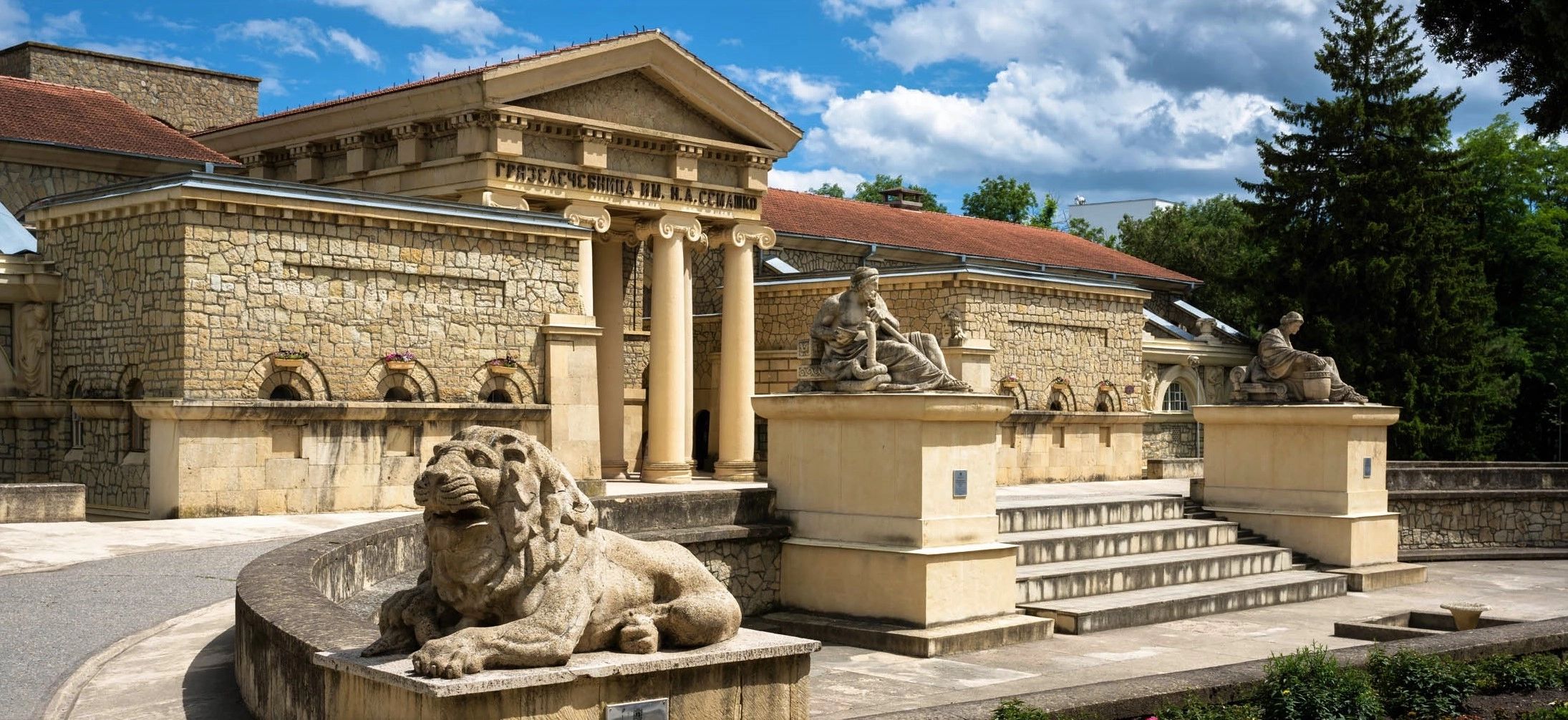 Грязелечебница имени Семашко — символ курорта Ессентуки и настоящий архитектурный шедевр. Построенная перед революцией, она напоминает термальный комплекс Римской империи. Её фасад украшен колоннами, портиками, скульптурами богов врачевания, лестницами и фигурами каменных львов. Это место стало популярной фото-зоной и съёмочной площадкой для фильмов, включая знаменитую сцену из «12 стульев».