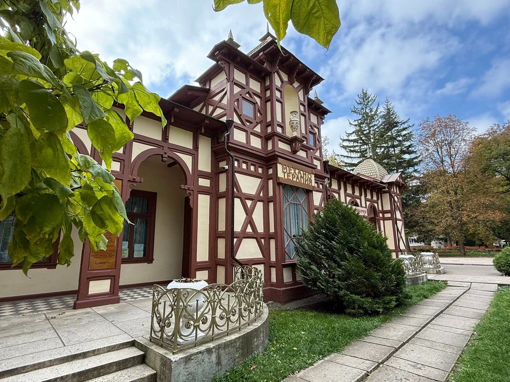 Особое внимание привлекает здание Театр-парка — классический курортный павильон, который стал символом города.