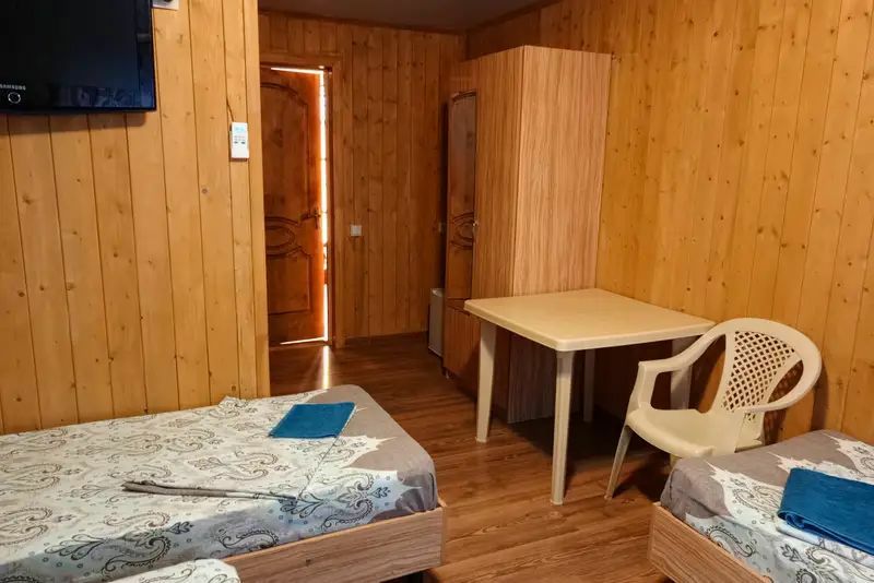 Комнаты со всеми удобствами на 2-3-4 человека. Возможны доп. места. Для больших семей предоставляем удобное размещение — две комнаты рядом. В комнатах: сплит-система, телевизор, холодильник, шкаф, прикроватные тумбочки, двуспальные и односпальные кровати, санузел с душевой кабинкой.
