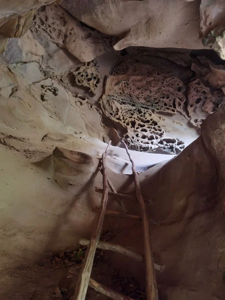 Еще один любопытный объект – это грот Крыло ангела. Расположен рядом с водопадами. Привлекают внимание его необычные стены. Порода имеет рисунок, напоминающий пчелиные соты. Считается, что образовался он в результате выветривания. Грот довольно большой, здесь светло и сухо.
