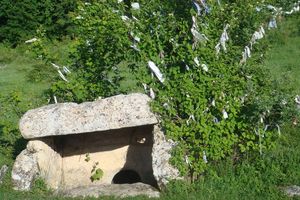 После осмотра дольменов продолжайте движение вдоль реки. Дорога сильно разбита, поэтому проехать можно только на внедорожнике. Примерно в 1,5 километрах от пастушеского балагана вы достигнете конечной точки маршрута. Вход в пещеру плохо заметен с дороги, но к нему ведёт хорошо протоптанная тропинка.