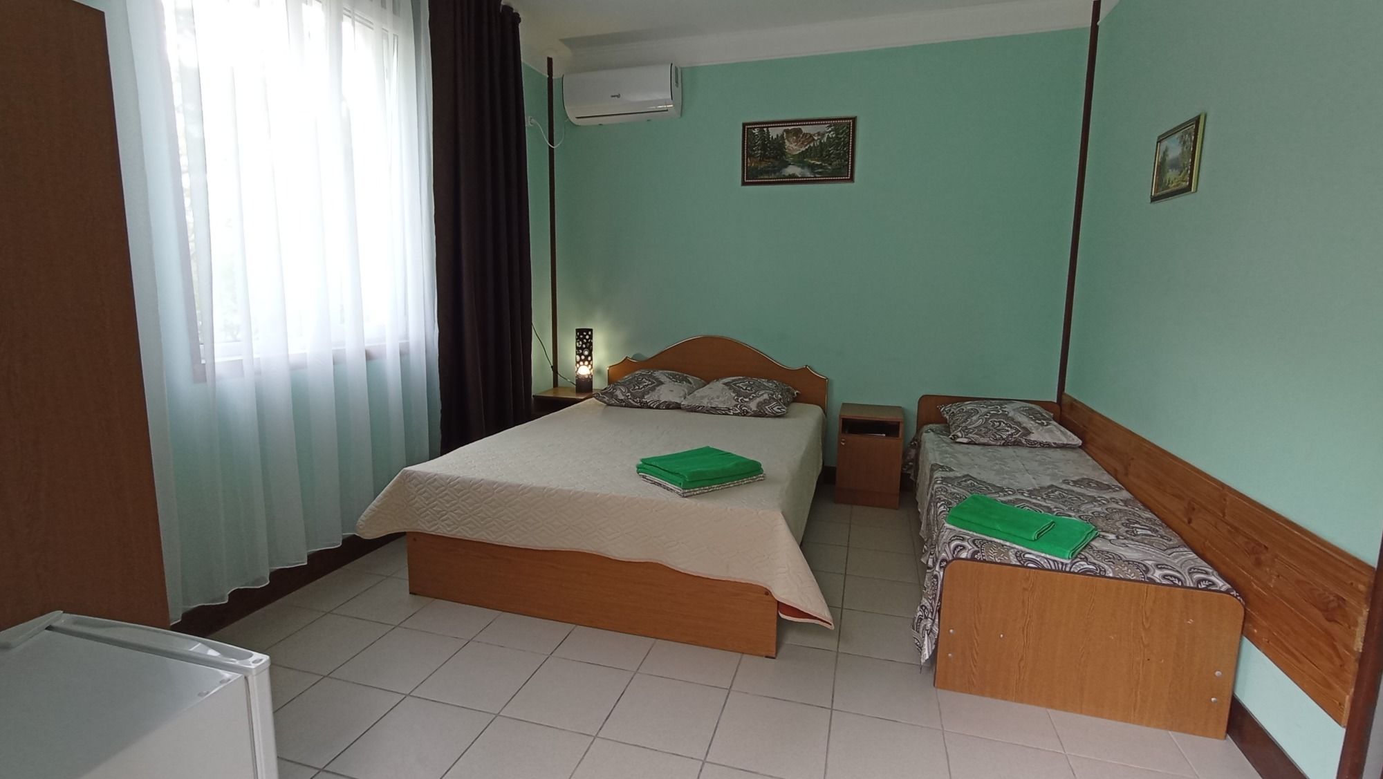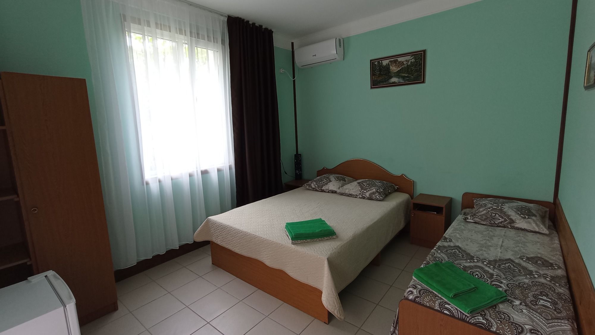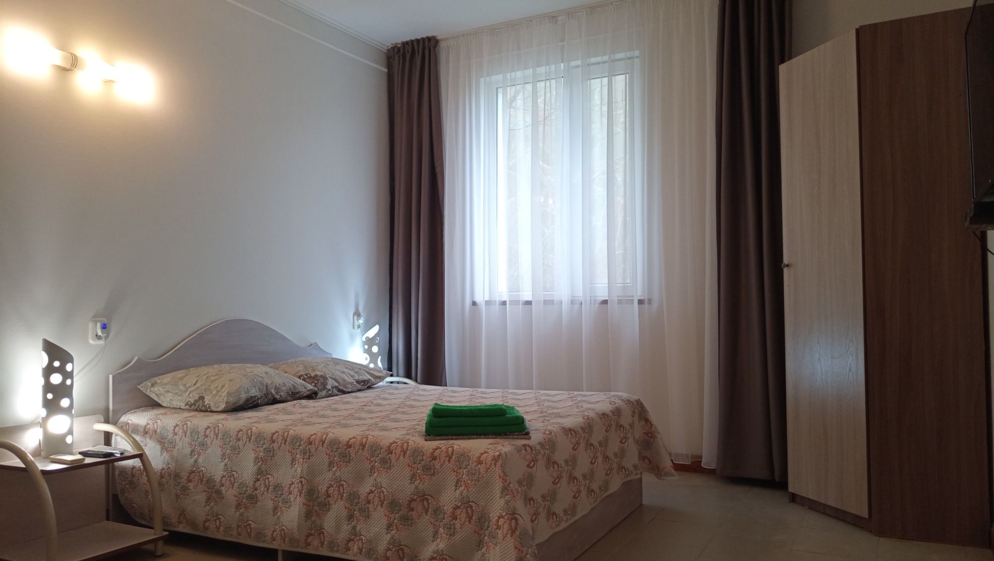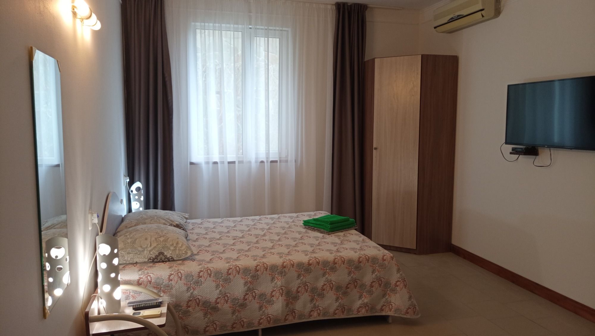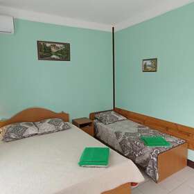 Это то место где вы сможете хорошо и приятно отдохнуть. Хозяева очень приветливы и гостеприимны. В номере есть всё необходимое для сна и отдыха, туалет с душем и умывальники, всё чисто и аккуратно. Постельное бельё свежее, мебель не скрипит))) фотографии полностью соответствую. Во дворе среди зелени небольшой бассейн,в котором можно освежиться, ежедневно убирают. Вечером можно посидеть в отдельной беседке, где можно и музыку послушать и караоке по попеть!!! До моря и магазинов не далеко. Две-три минуты ходьбы!!! Рекомендую!!!