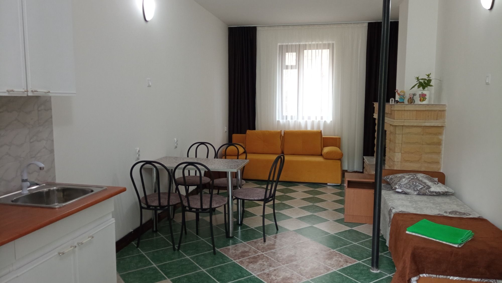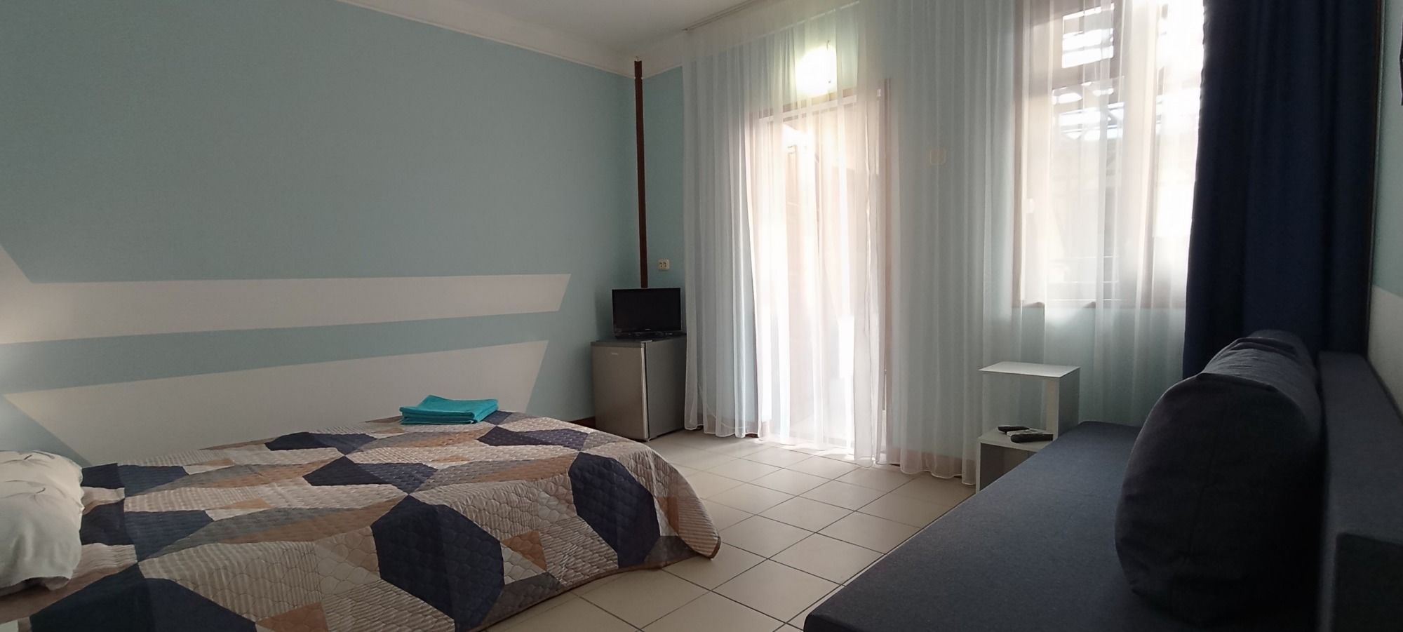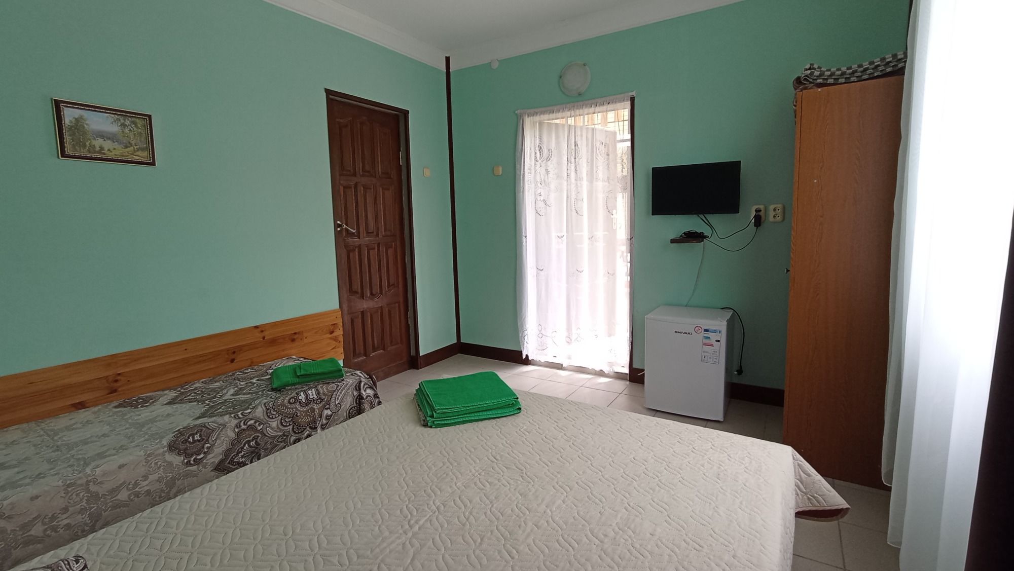 Это то место где вы сможете хорошо и приятно отдохнуть. Хозяева очень приветливы и гостеприимны. В номере есть всё необходимое для сна и отдыха, туалет с душем и умывальники, всё чисто и аккуратно. Постельное бельё свежее, мебель не скрипит))) фотографии полностью соответствую. Во дворе среди зелени небольшой бассейн,в котором можно освежиться, ежедневно убирают. Вечером можно посидеть в отдельной беседке, где можно и музыку послушать и караоке по попеть!!! До моря и магазинов не далеко. Две-три минуты ходьбы!!! Рекомендую!!!