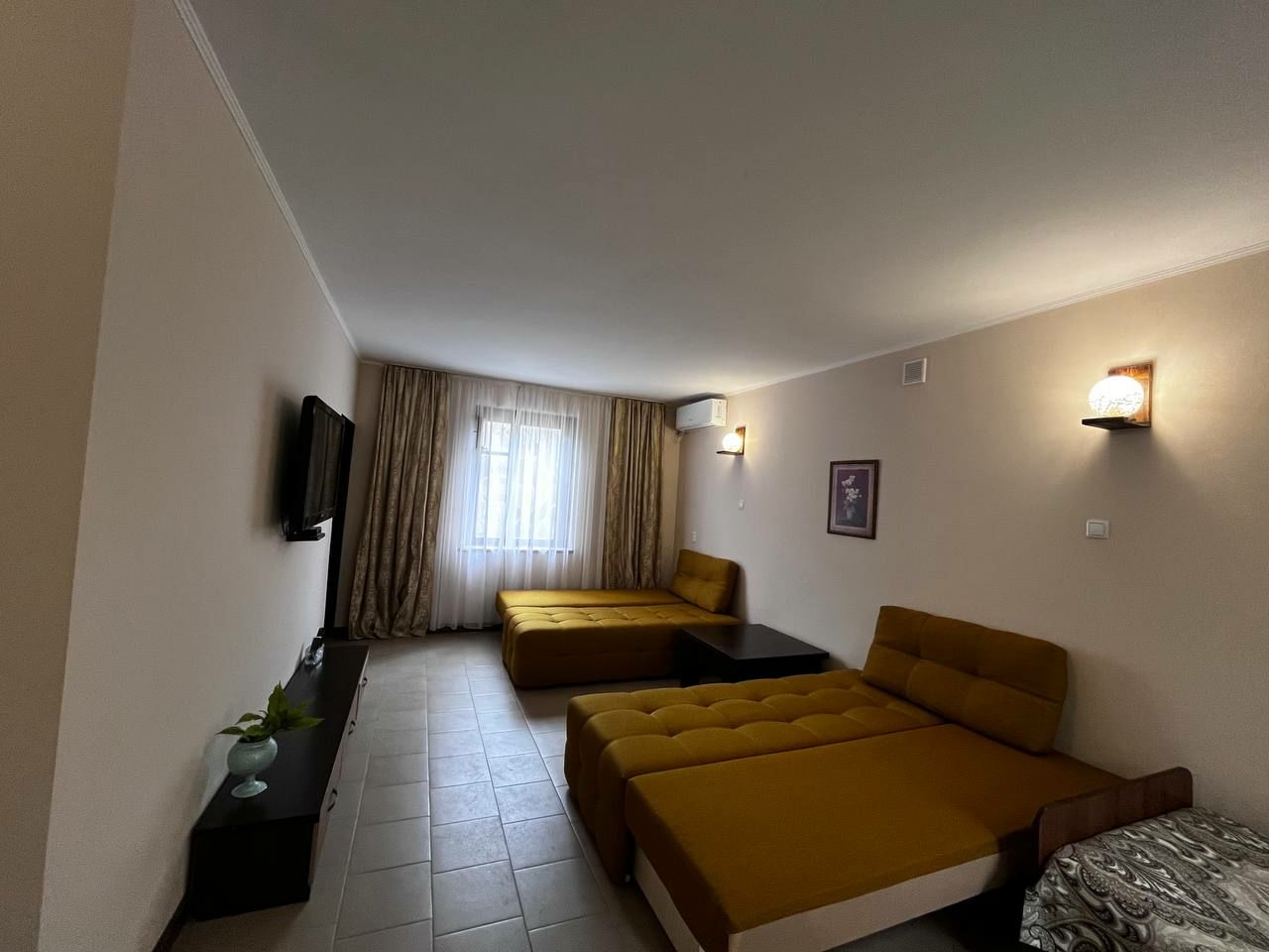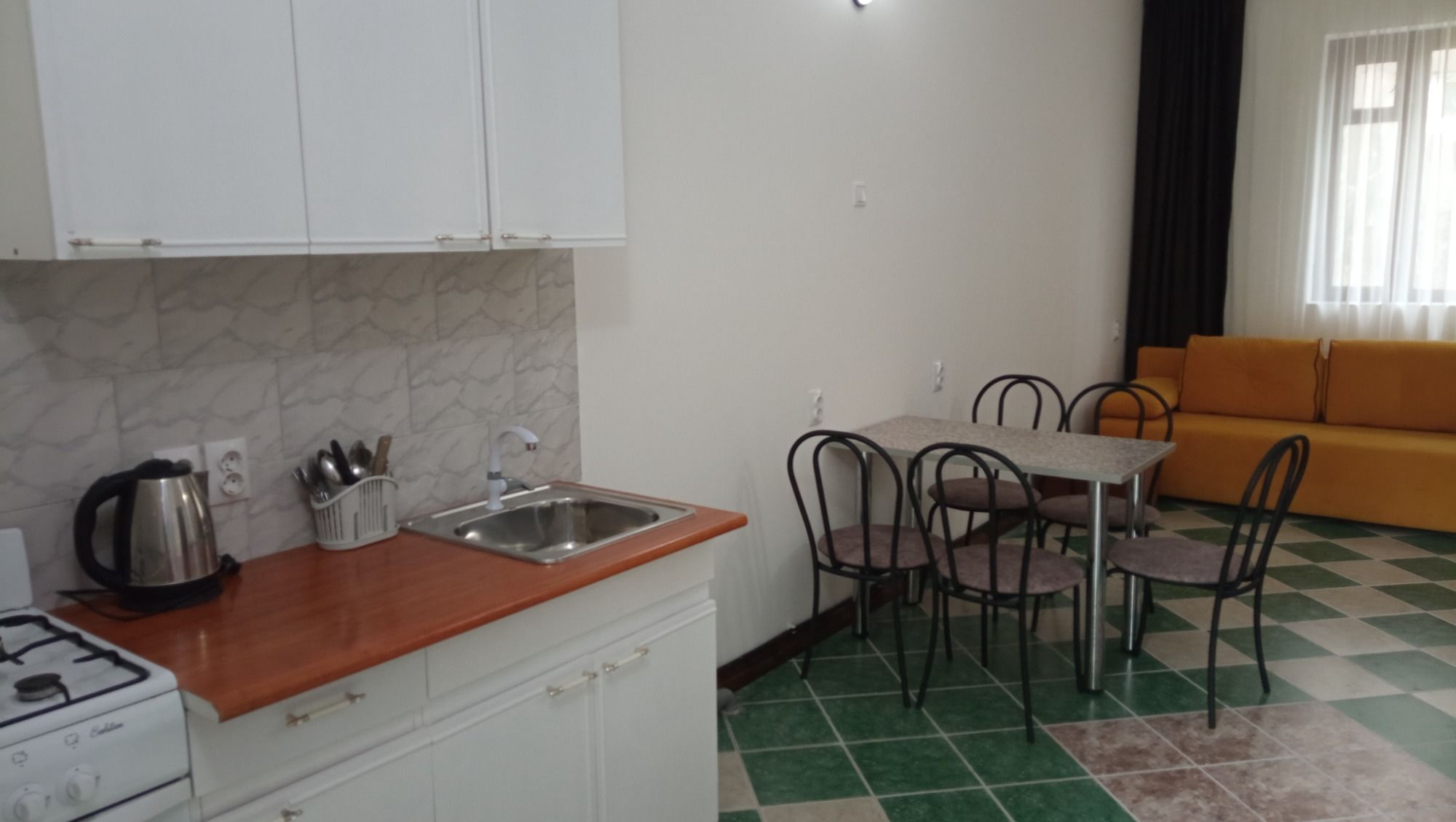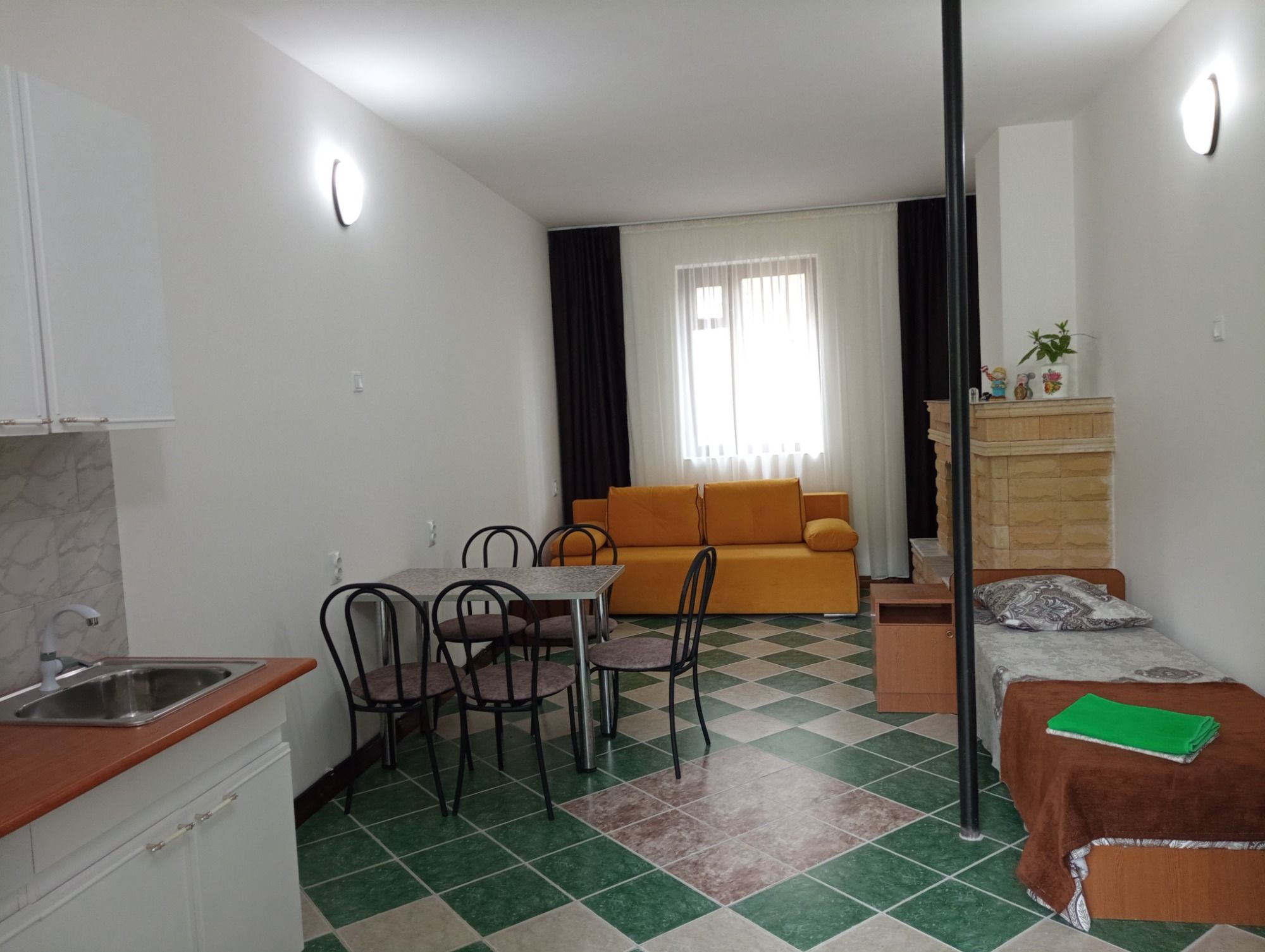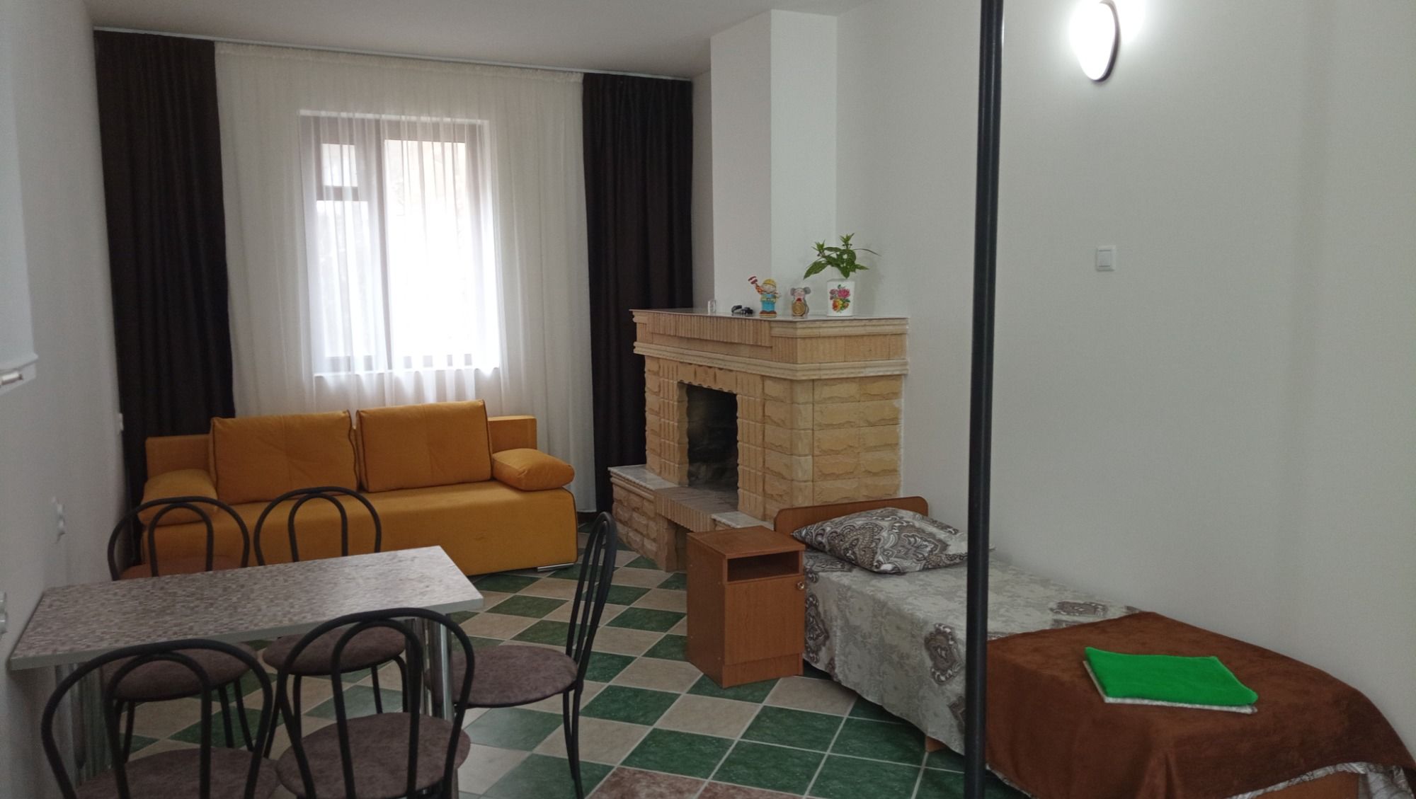 Это то место где вы сможете хорошо и приятно отдохнуть. Хозяева очень приветливы и гостеприимны. В номере есть всё необходимое для сна и отдыха, туалет с душем и умывальники, всё чисто и аккуратно. Постельное бельё свежее, мебель не скрипит))) фотографии полностью соответствую. Во дворе среди зелени небольшой бассейн,в котором можно освежиться, ежедневно убирают. Вечером можно посидеть в отдельной беседке, где можно и музыку послушать и караоке по попеть!!! До моря и магазинов не далеко. Две-три минуты ходьбы!!! Рекомендую!!!