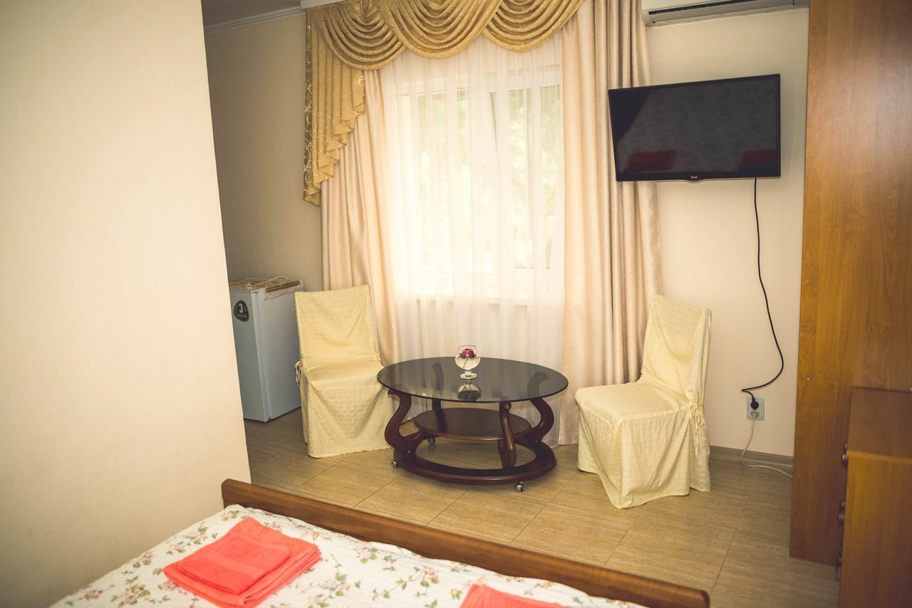 В каждой комнате: туалетная комната (душ с холодной и горячей водой, раковина, унитаз), 2-х спальная кровать, платяной шкаф, телевизор, холодильник, кондиционер, обогреватель.