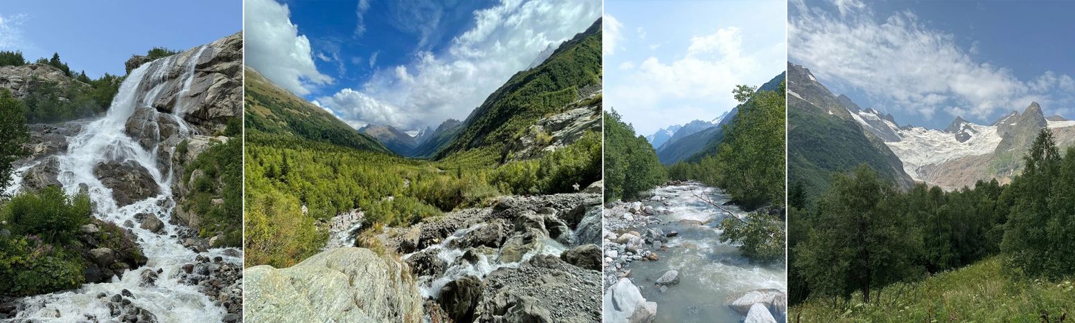 Если вы приехали на машине, до водопада можно дойти за 25–30 минут. Если же вы идёте пешком из Домбая, путь займёт около 2,5 часов в одну сторону и столько же обратно. По пути можно сделать красивые фотографии и устроить пикник.