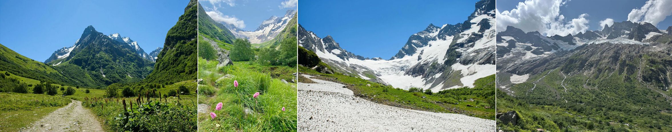 Захватывающие пейзажи Птышского ущелья являются одними из самых впечатляющих в Домбае. Острые вершины гор, увенчанные белоснежными ледниками, контрастируют с сочной зеленью и яркими цветами. Бурные потоки Птышского водопада, срываясь с высоких скал, создают неповторимую атмосферу.
