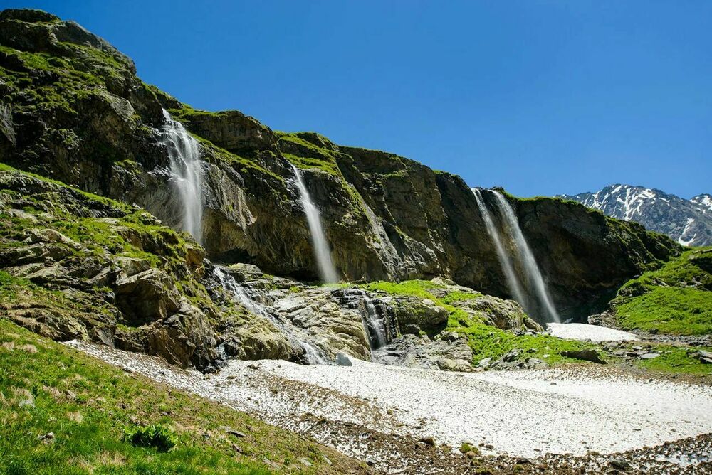 Птышские водопады — одна из самых живописных достопримечательностей Домбая. В окрестностях этих величественных водопадов также можно увидеть грандиозный ледник с тем же названием. Роскошные каскады и древняя, покрытая трещинами наледь находятся на территории Тебердинского заповедника.