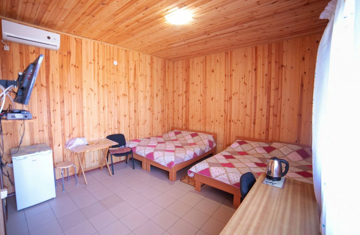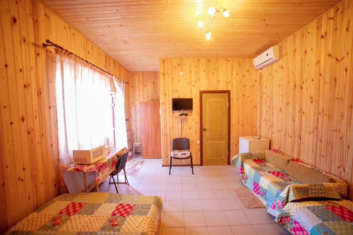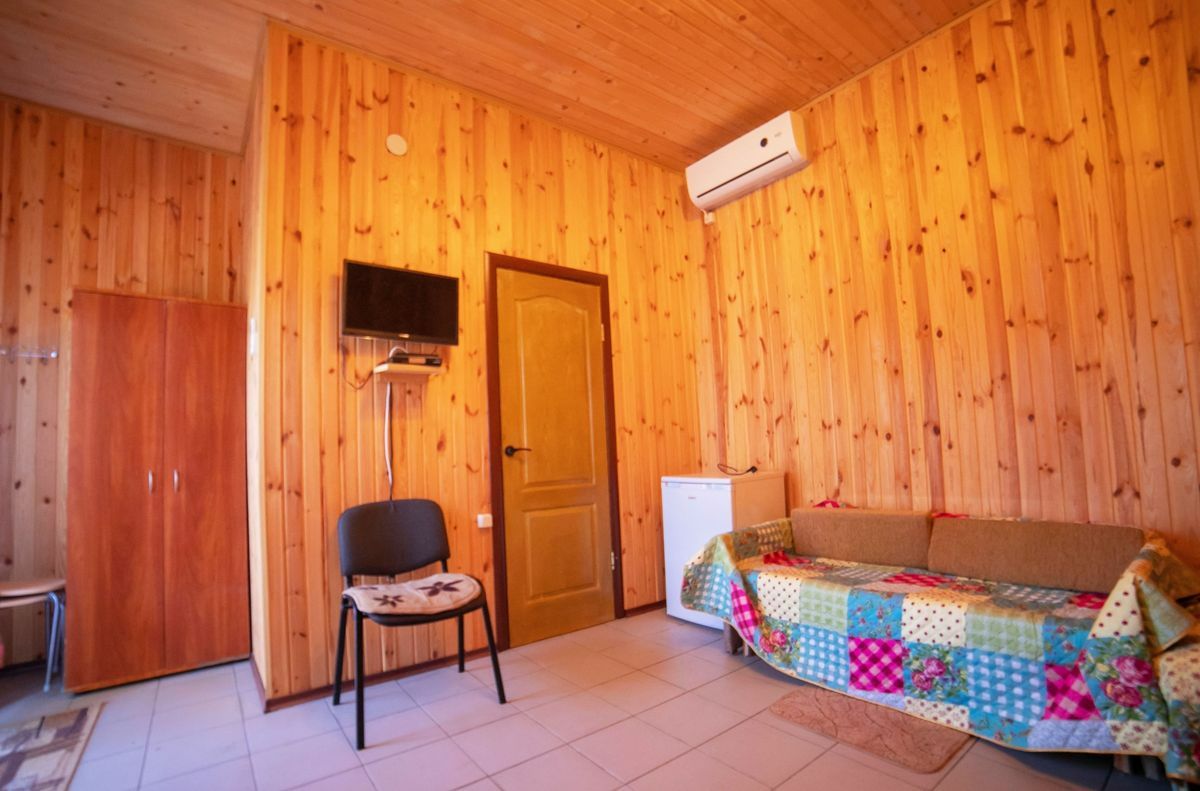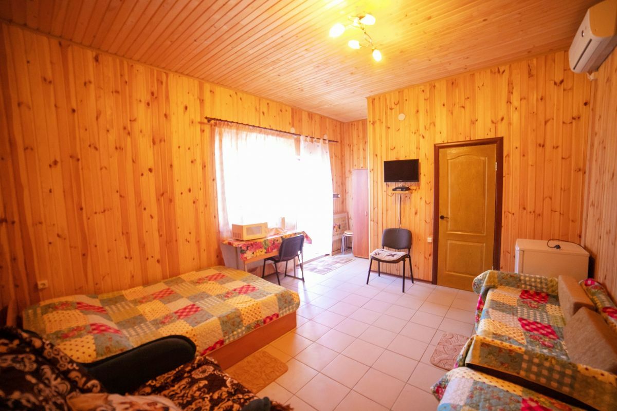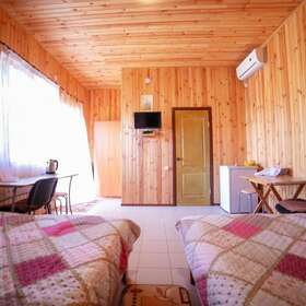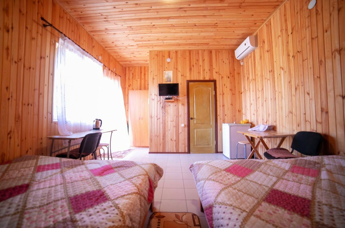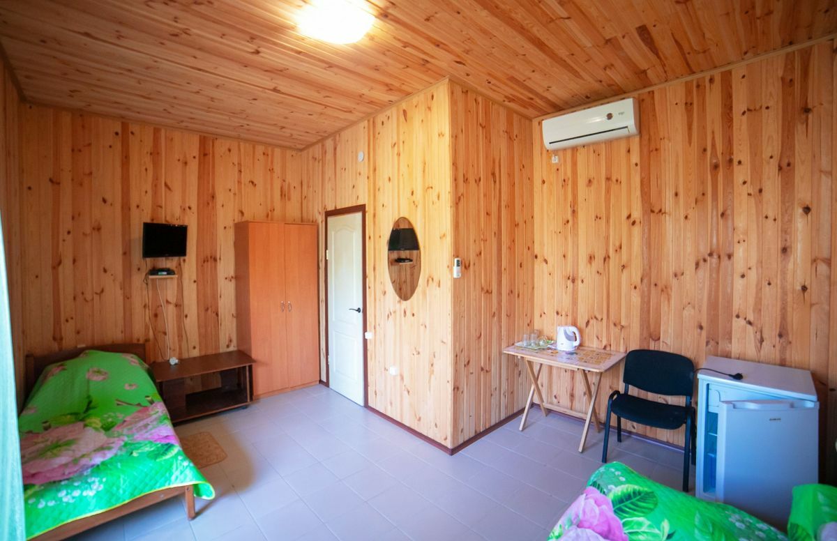 При строительстве отеля большое внимание уделялось экологичности строительных и отделочных материалов. Отделка номеров — настоящее дерево, пластик при строительстве не использовался. Номерной фонд: однокомнатные и двухкомнатные номера на 2, 3, 4, ,5 и 6 местные. Все номера с удобствами, круглосуточной холодной и горячей водой и интернетом. В номерах: спутниковое ТВ более 300 каналов, беспроводной интернет, ЖК телевизор, кондиционер, микроволновая печь, холодильник, эл.чайник, посуда,круглосуточно холодная и горячая вода. В номерах двухспальные, односпальные кровати, раскладные диваны и кресла, а также зеркало, шкаф, тумбочки, по два стола и стулья. Практически во всех номерах есть возможность дополнительного места либо детской кроватки - по желанию. Возле каждого номера индивидуальная терраса со столиком и стульями для отдыха на свежем воздухе, а 6-ти местный номер имеет особый статус, так как он занимает весь первый этаж дома и имеет свою кухню с посудой и беседку для отдыха. В номере — кондиционер, стиральная машина, микроволновая печь, электрочайник, холодильник, телевизор, спутниковая антенна, евро кровать два раскладных дивана, раскладное кресло и имеется возможность двух дополнительных мест. Окна номеров выходят либо на море, либо в сад. Постельное белье, полотенца, туалетные принадлежности и моющие средства входят в стоимость проживания.