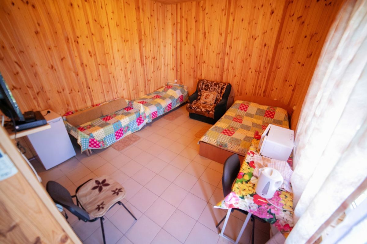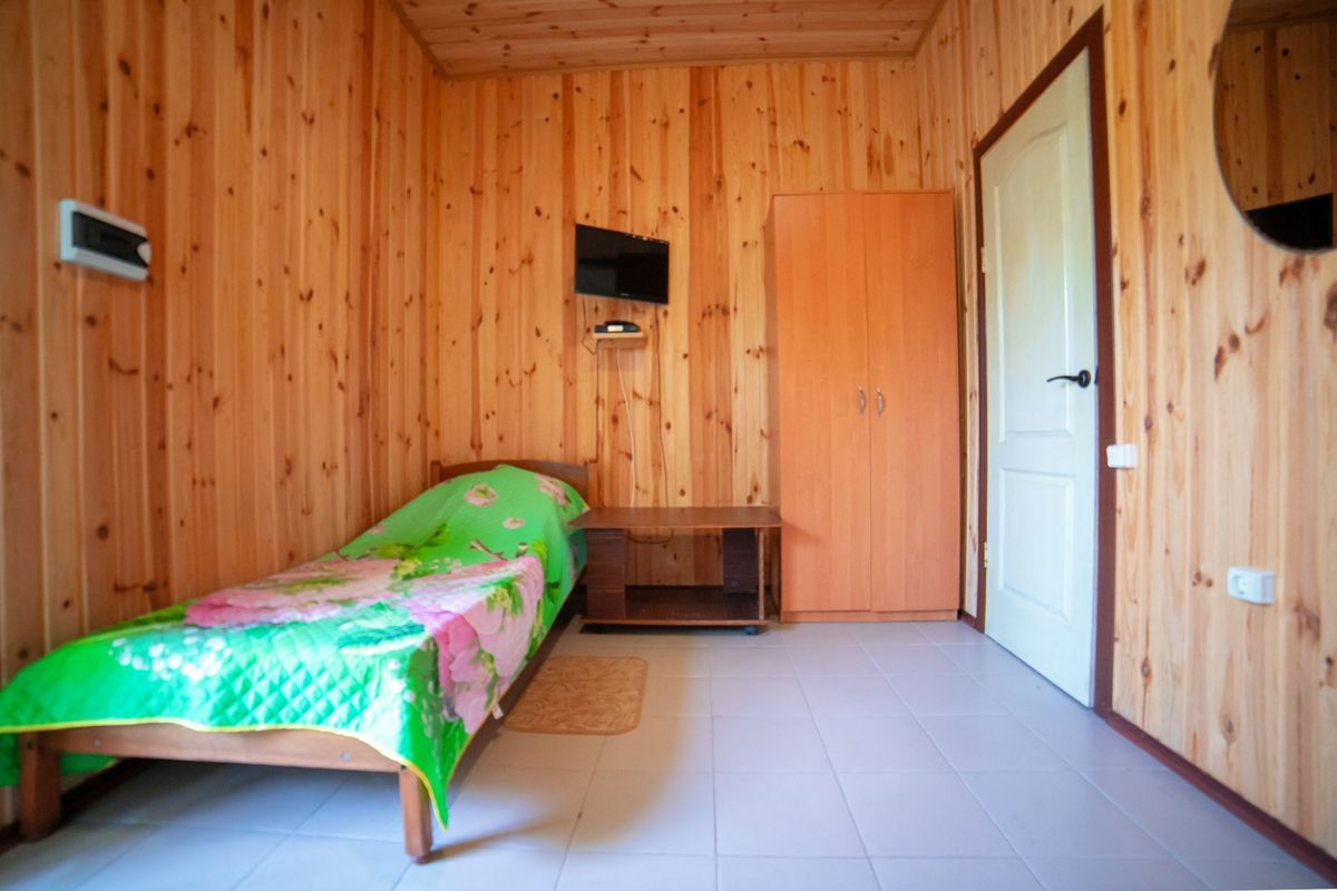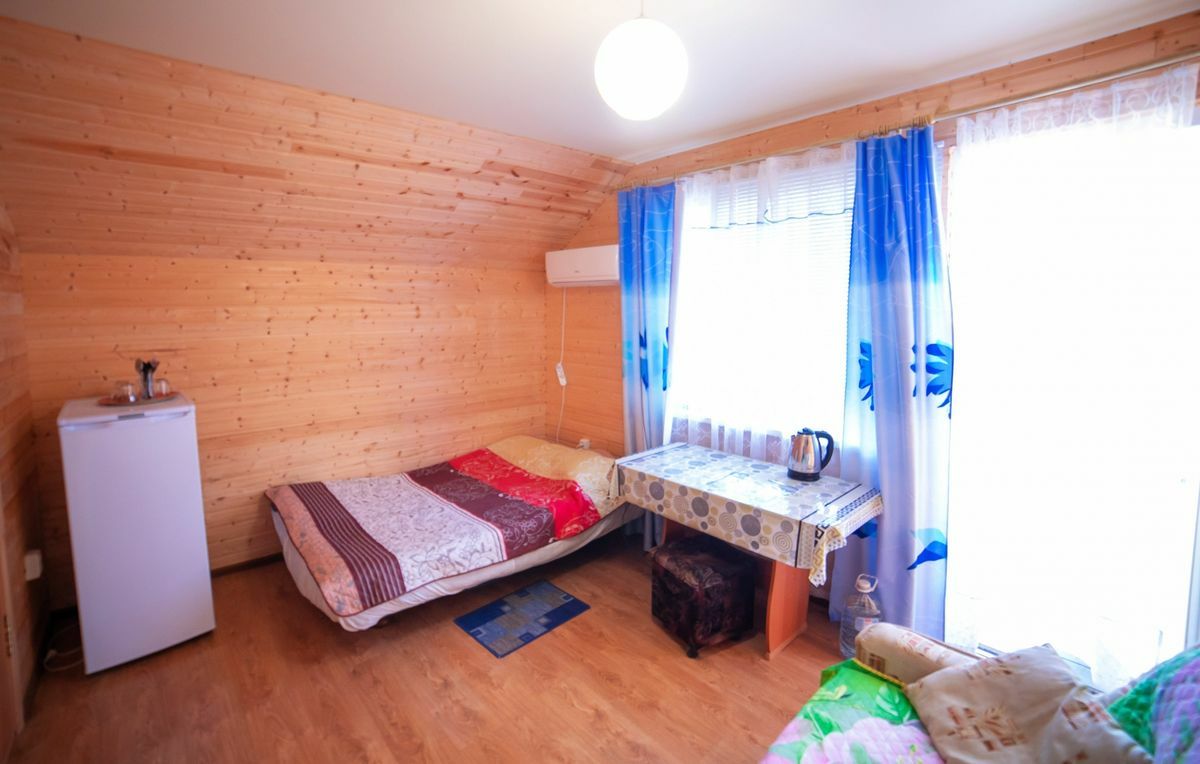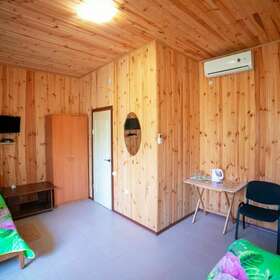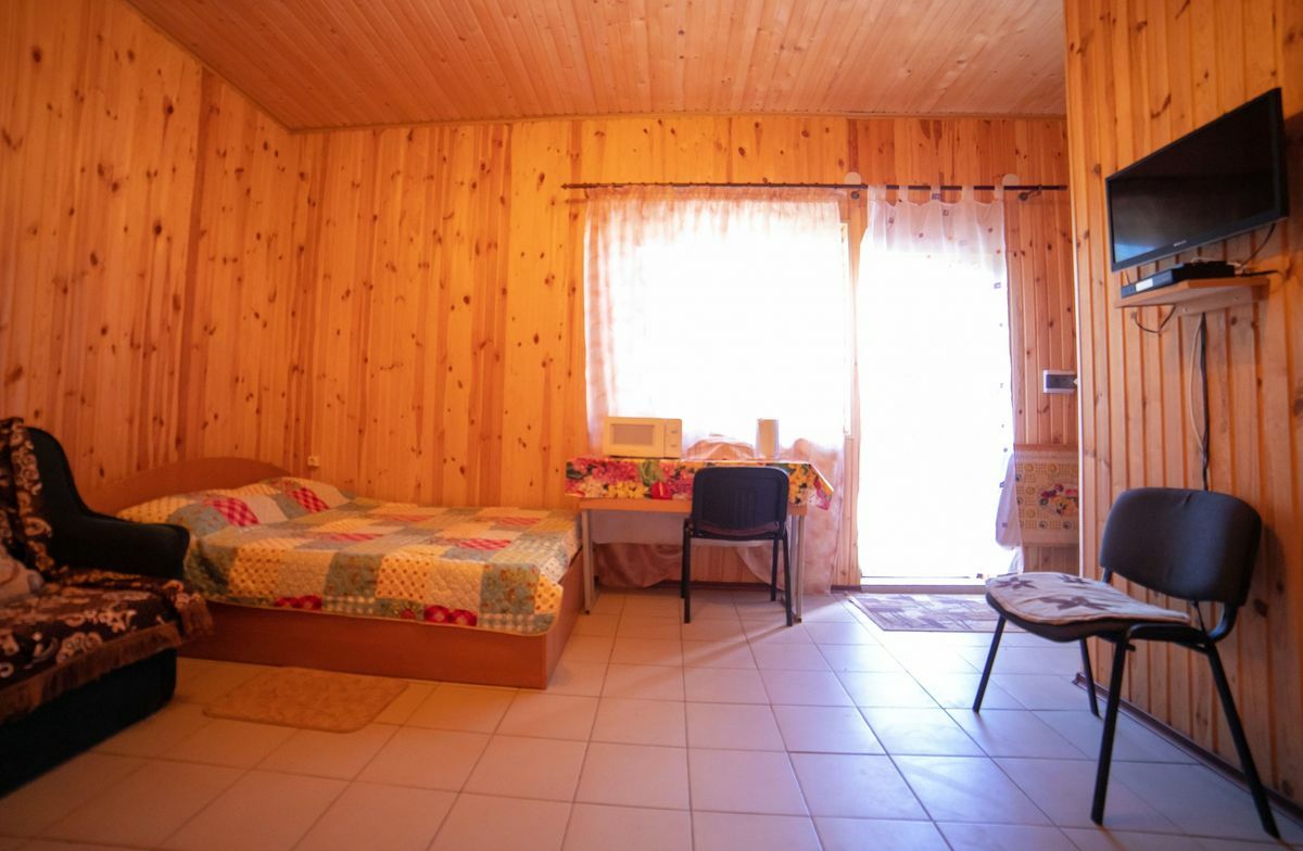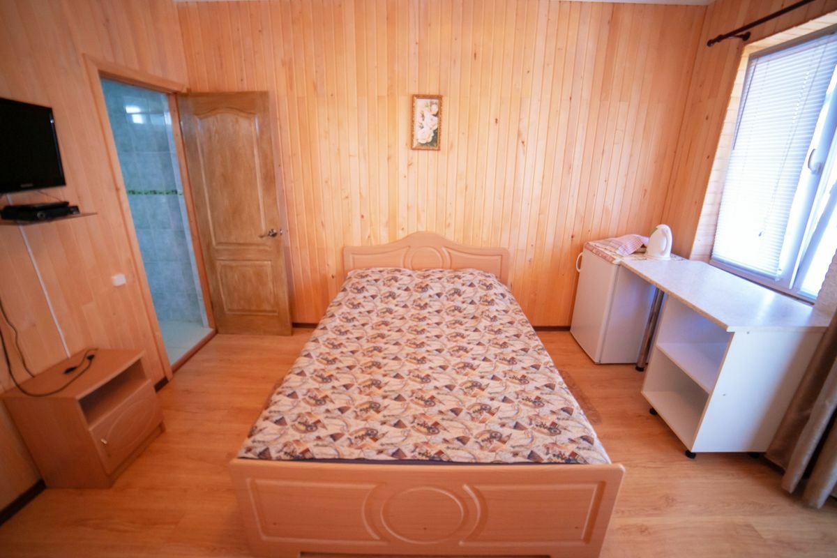 При строительстве отеля большое внимание уделялось экологичности строительных и отделочных материалов. Отделка номеров — настоящее дерево, пластик при строительстве не использовался. Номерной фонд: однокомнатные и двухкомнатные номера на 2, 3, 4, ,5 и 6 местные. Все номера с удобствами, круглосуточной холодной и горячей водой и интернетом. В номерах: спутниковое ТВ более 300 каналов, беспроводной интернет, ЖК телевизор, кондиционер, микроволновая печь, холодильник, эл.чайник, посуда,круглосуточно холодная и горячая вода. В номерах двухспальные, односпальные кровати, раскладные диваны и кресла, а также зеркало, шкаф, тумбочки, по два стола и стулья. Практически во всех номерах есть возможность дополнительного места либо детской кроватки - по желанию. Возле каждого номера индивидуальная терраса со столиком и стульями для отдыха на свежем воздухе, а 6-ти местный номер имеет особый статус, так как он занимает весь первый этаж дома и имеет свою кухню с посудой и беседку для отдыха. В номере — кондиционер, стиральная машина, микроволновая печь, электрочайник, холодильник, телевизор, спутниковая антенна, евро кровать два раскладных дивана, раскладное кресло и имеется возможность двух дополнительных мест. Окна номеров выходят либо на море, либо в сад. Постельное белье, полотенца, туалетные принадлежности и моющие средства входят в стоимость проживания.
