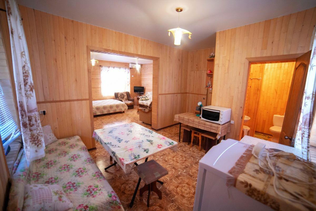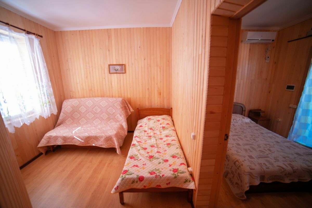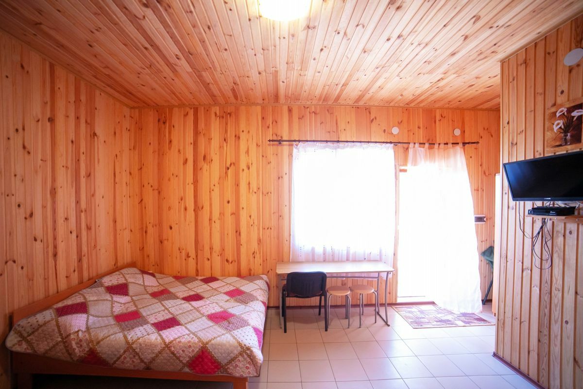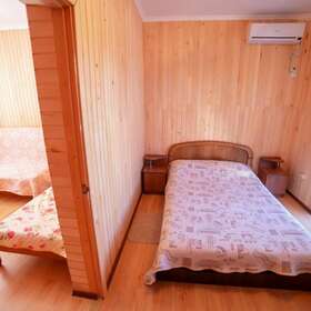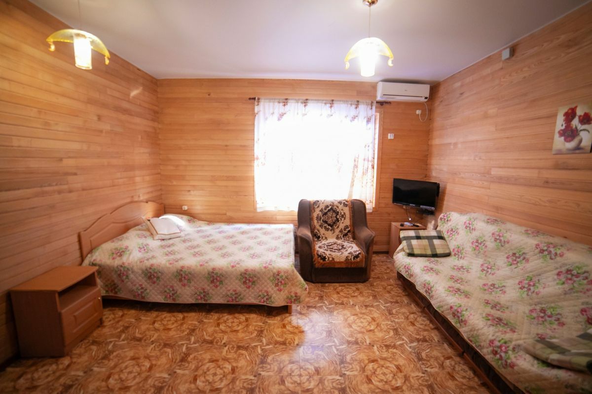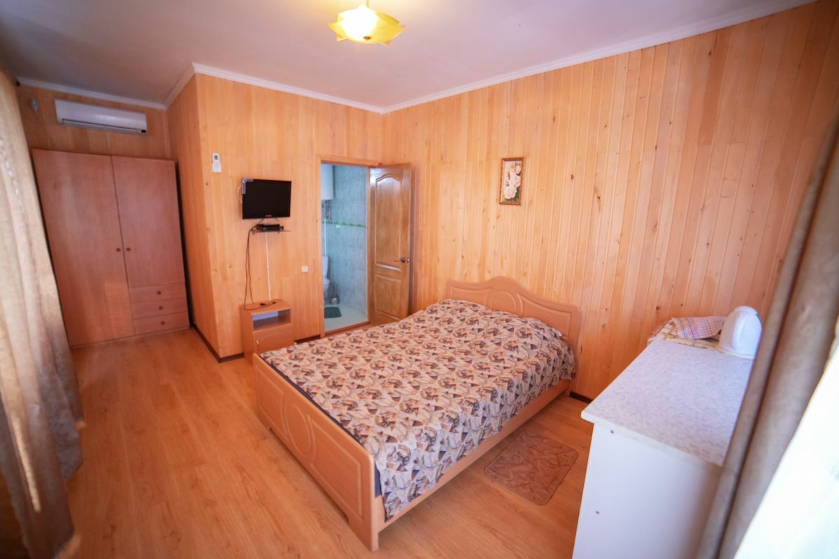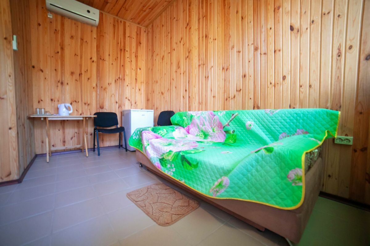 При строительстве отеля большое внимание уделялось экологичности строительных и отделочных материалов. Отделка номеров — настоящее дерево, пластик при строительстве не использовался. Номерной фонд: однокомнатные и двухкомнатные номера на 2, 3, 4, ,5 и 6 местные. Все номера с удобствами, круглосуточной холодной и горячей водой и интернетом. В номерах: спутниковое ТВ более 300 каналов, беспроводной интернет, ЖК телевизор, кондиционер, микроволновая печь, холодильник, эл.чайник, посуда,круглосуточно холодная и горячая вода. В номерах двухспальные, односпальные кровати, раскладные диваны и кресла, а также зеркало, шкаф, тумбочки, по два стола и стулья. Практически во всех номерах есть возможность дополнительного места либо детской кроватки - по желанию. Возле каждого номера индивидуальная терраса со столиком и стульями для отдыха на свежем воздухе, а 6-ти местный номер имеет особый статус, так как он занимает весь первый этаж дома и имеет свою кухню с посудой и беседку для отдыха. В номере — кондиционер, стиральная машина, микроволновая печь, электрочайник, холодильник, телевизор, спутниковая антенна, евро кровать два раскладных дивана, раскладное кресло и имеется возможность двух дополнительных мест. Окна номеров выходят либо на море, либо в сад. Постельное белье, полотенца, туалетные принадлежности и моющие средства входят в стоимость проживания.