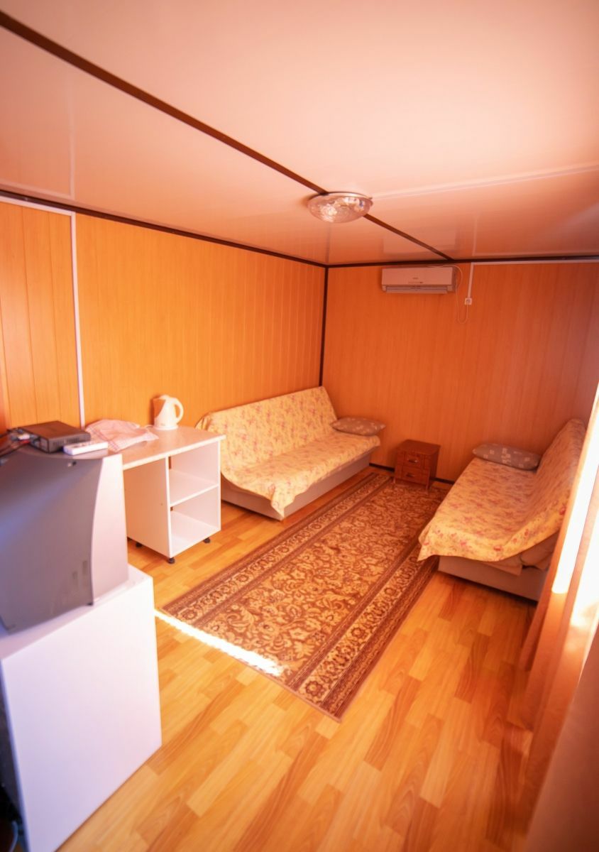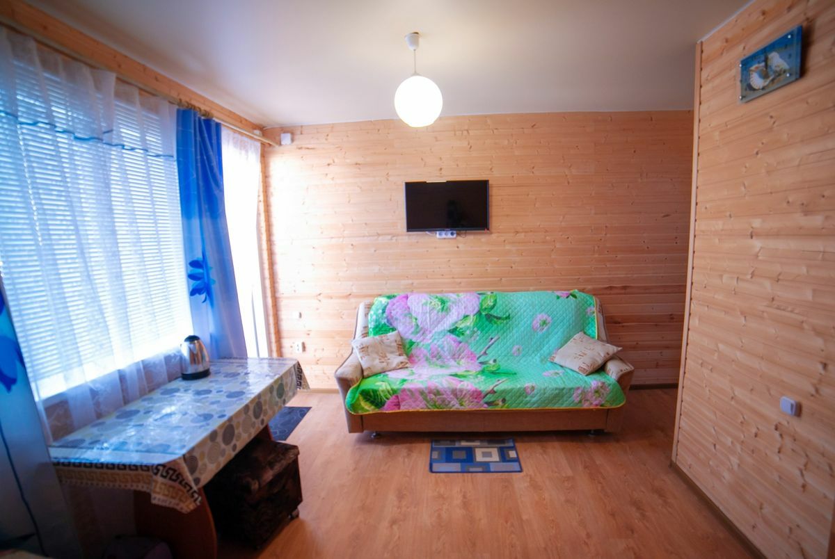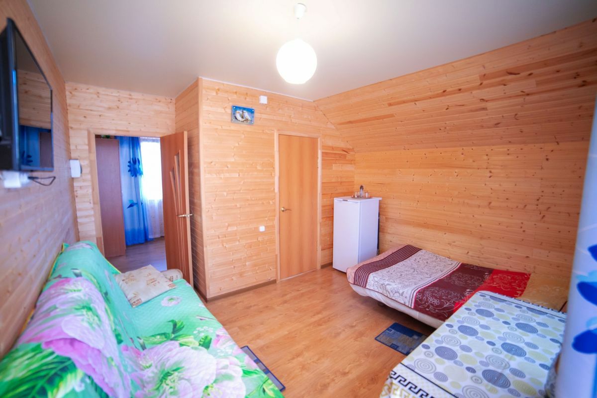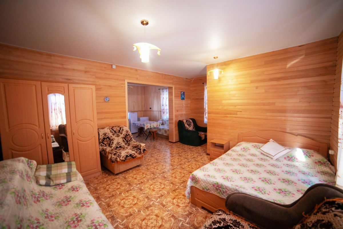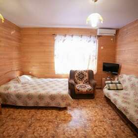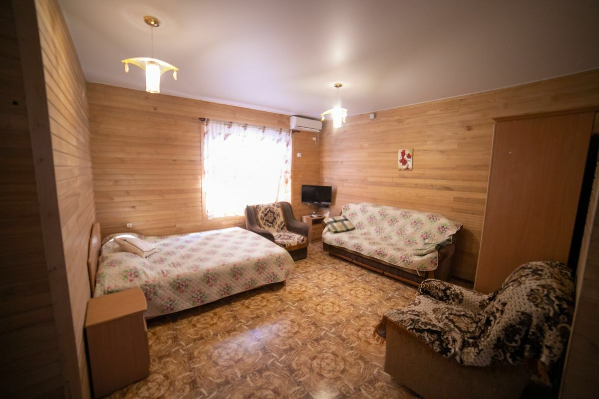 При строительстве отеля большое внимание уделялось экологичности строительных и отделочных материалов. Отделка номеров — настоящее дерево, пластик при строительстве не использовался. Номерной фонд: однокомнатные и двухкомнатные номера на 2, 3, 4, ,5 и 6 местные. Все номера с удобствами, круглосуточной холодной и горячей водой и интернетом. В номерах: спутниковое ТВ более 300 каналов, беспроводной интернет, ЖК телевизор, кондиционер, микроволновая печь, холодильник, эл.чайник, посуда,круглосуточно холодная и горячая вода. В номерах двухспальные, односпальные кровати, раскладные диваны и кресла, а также зеркало, шкаф, тумбочки, по два стола и стулья. Практически во всех номерах есть возможность дополнительного места либо детской кроватки - по желанию. Возле каждого номера индивидуальная терраса со столиком и стульями для отдыха на свежем воздухе, а 6-ти местный номер имеет особый статус, так как он занимает весь первый этаж дома и имеет свою кухню с посудой и беседку для отдыха. В номере — кондиционер, стиральная машина, микроволновая печь, электрочайник, холодильник, телевизор, спутниковая антенна, евро кровать два раскладных дивана, раскладное кресло и имеется возможность двух дополнительных мест. Окна номеров выходят либо на море, либо в сад. Постельное белье, полотенца, туалетные принадлежности и моющие средства входят в стоимость проживания.