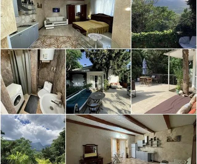Квартира находится в частном доме, окружённом вековыми кипарисами, в тихом и живописном районе Гурзуфа с видом на море и горы.