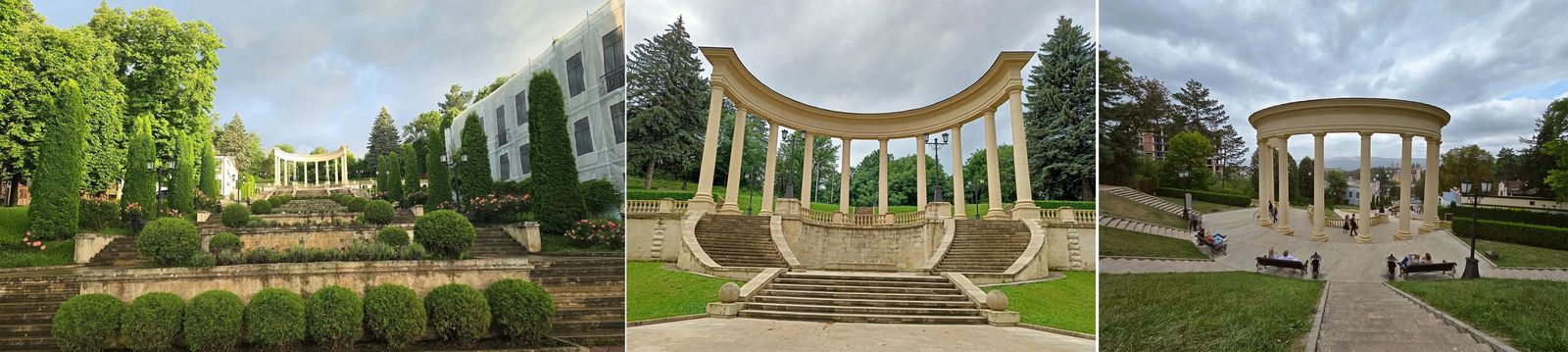 Изящная полуротонда в классическом стиле с шестью колоннами и двумя симметричными боковыми павильонами, расположенная на территории Верхнего Курортного парка. Площадка, созданная в 1914 году, архитектором Николаем Семеновым задумана как памятник целебному горному воздуху Кисловодска.
