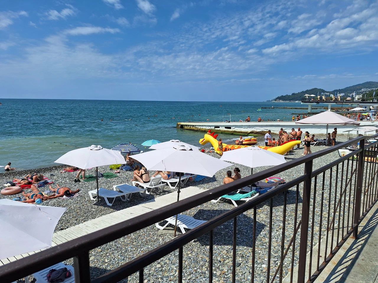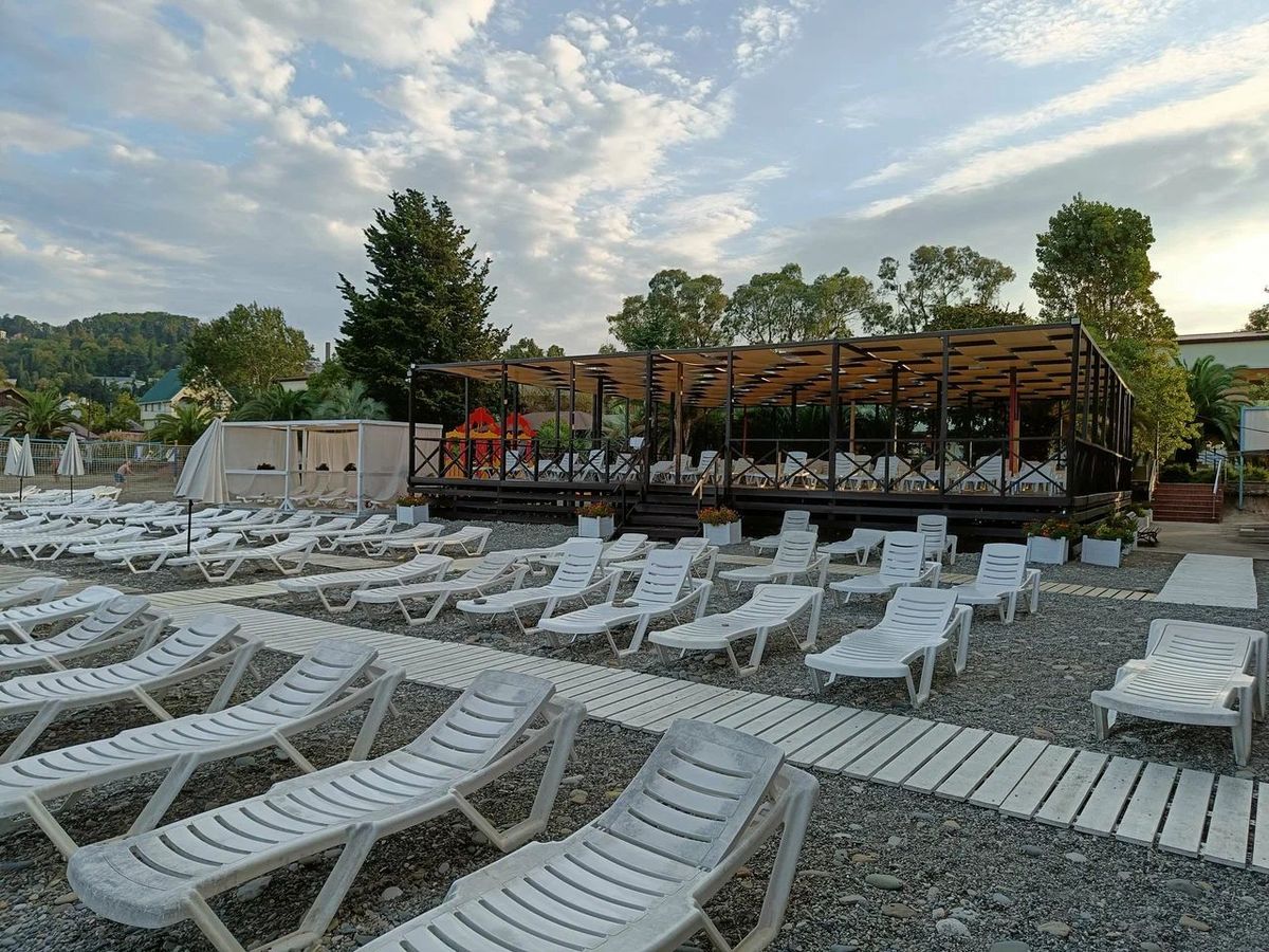 Вдоль берега расположено уютное кафе, где аромат свежесваренного кофе гармонично сочетается с морским бризом. В тени легких тканевых навесов находятся VIP-зоны для отдыха и загара. Здесь каждый шезлонг создан для того, чтобы вы могли полностью расслабиться.