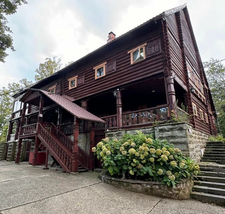 На территории музея работает кафе, где можно попробовать блюда кавказской кухни, включая шашлык, хачапури, уху и запечённую форель.
