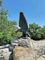 Орёл — это символ Кавминвод, хотя так было не всегда. Монумент появился благодаря созданию парка на горе Горячей в начале XX века. На склонах высадили деревья, разбили аллеи и установили бронзовую фигуру орла с раскрытыми крыльями, сжимающего в когтях ядовитую змею.