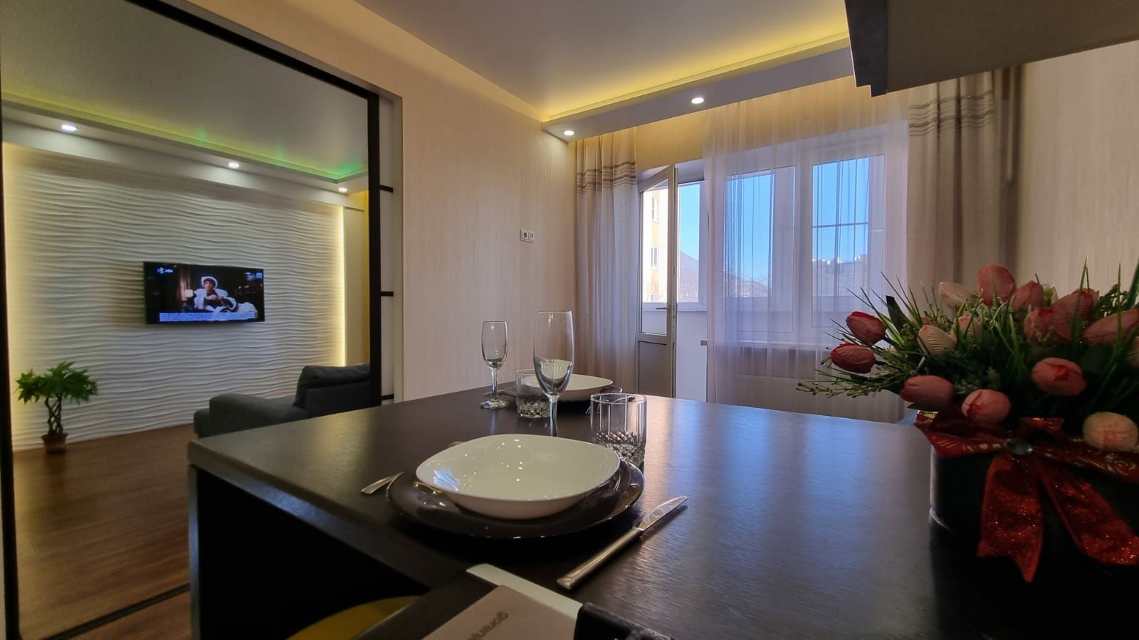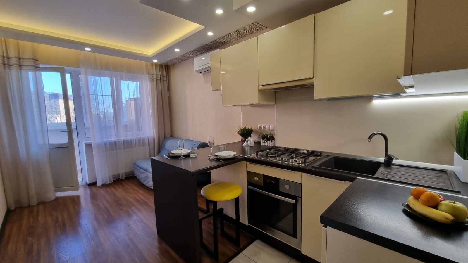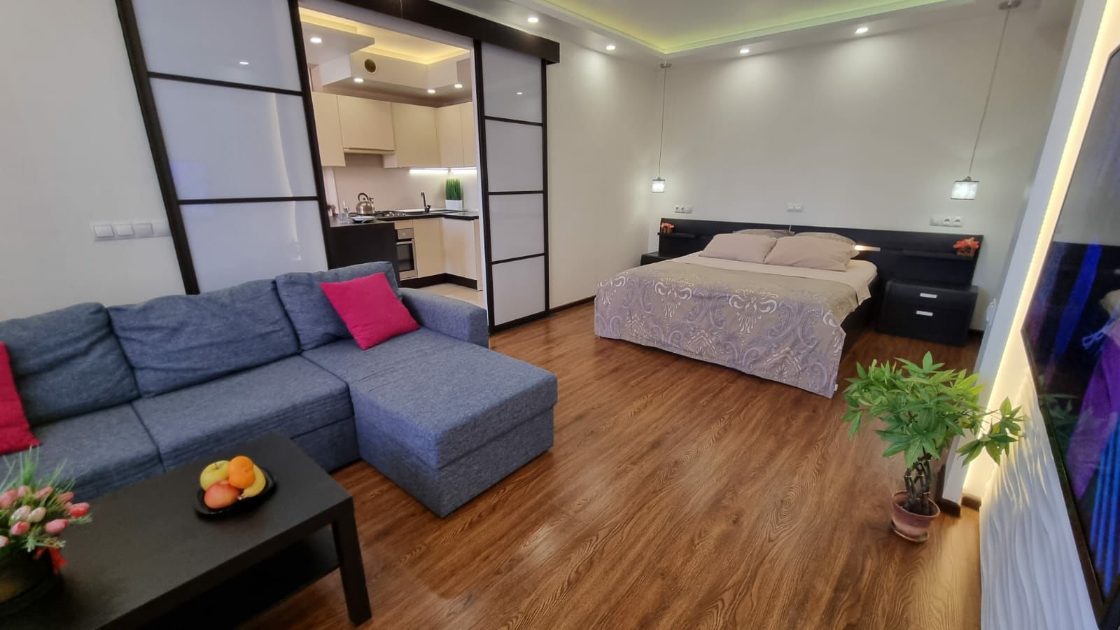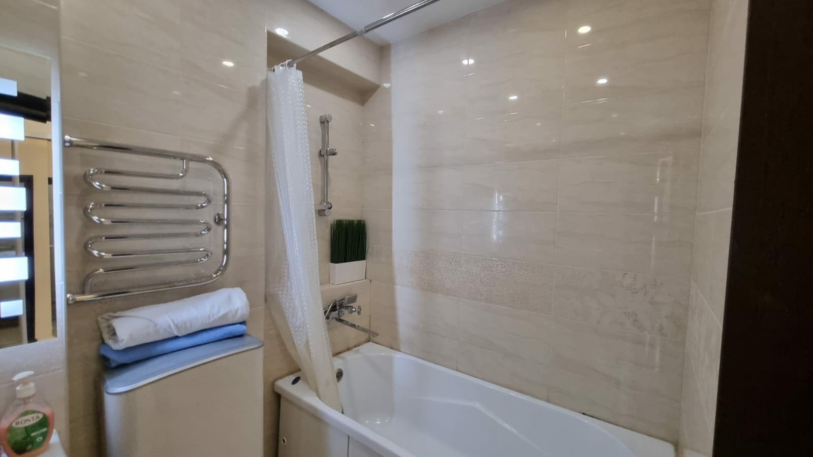 В квартире есть все необходимое для отдыха и длительного проживания. Укомплектованная кухня, холодильник, м/в печь, фен, ТВ, интернет(WI-FI) кондиционер. В базовую стоимость входит проживание двух человек + два за дополнительную плату.
