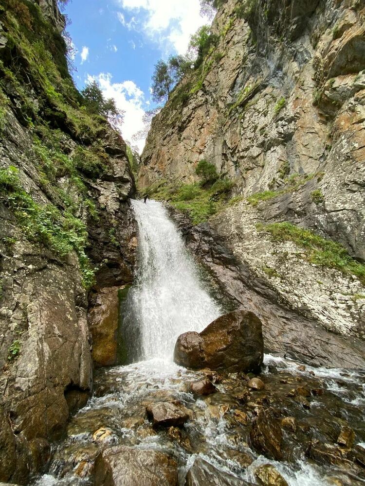 Если вы едете со стороны Теберды, дорога к водопаду будет слева от трассы, а со стороны Домбая — справа. Для удобства путешественников предусмотрена парковка рядом с началом тропы. Путь к водопаду занимает около часа и проходит через густой лес, где можно встретить вековые пихты и буки. Дорога промаркирована, а шум реки Шумки помогает ориентироваться на маршруте.