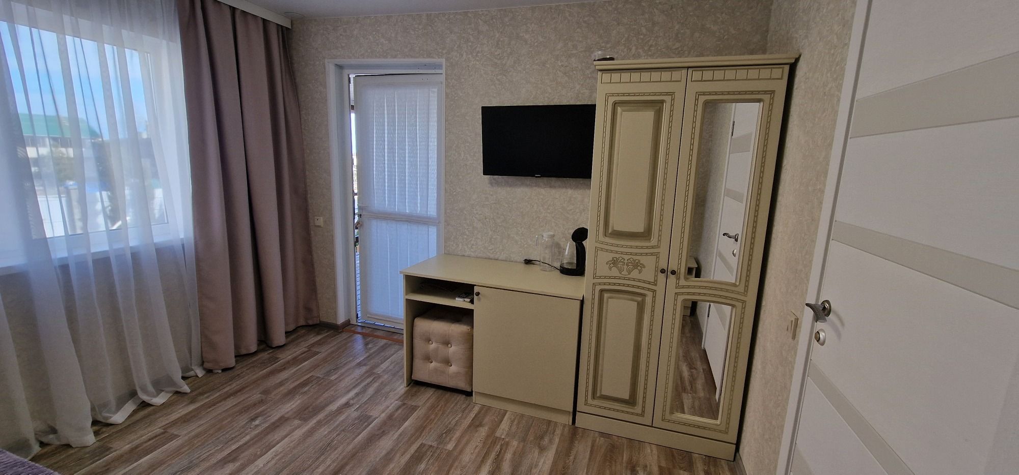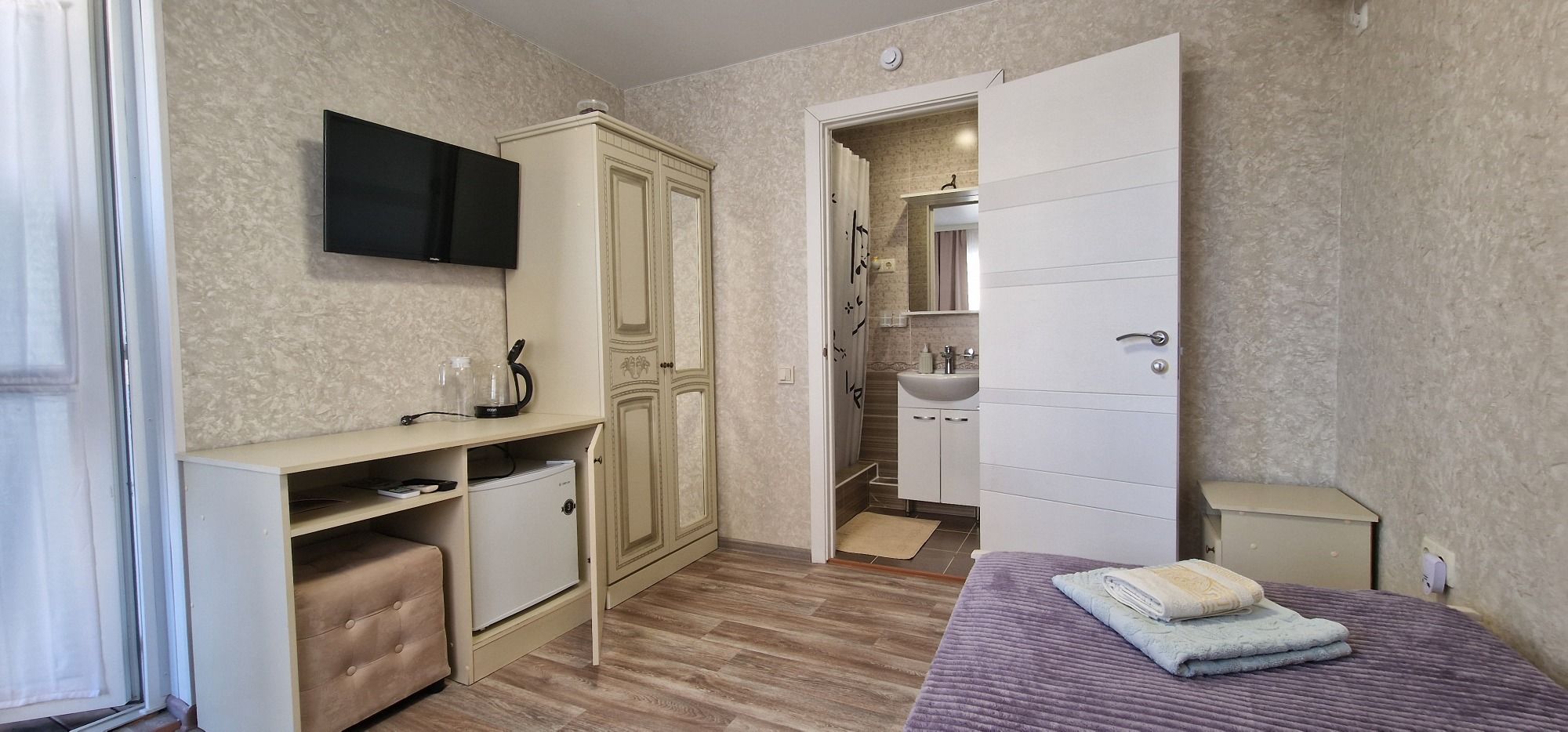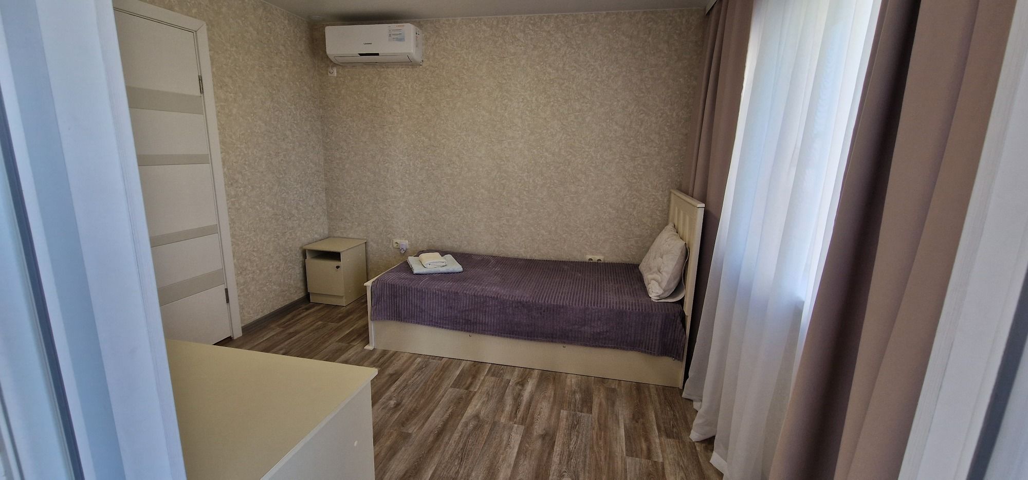 Проживали в июне! Все супер! Гостеприимство на высшем уровне, при заезде в номер, детям подготовлены были презенты, сразу стало понятно, что нас здесь ждали. Номера новые, чистые, есть абсолютно все: Кондиционер, холодильник, чайник, телевизор, душ, туалет, есть даже маленький ночной светильник в ванной комнате, что б детям сходить в туалет и не слепило глаза от обычного света, т.е продуманно все до мелочей. На территории детская площадка с песочницей, мангал, имеется казан, шампура, столы с лавочками, качели, так-же есть общая кухня со всем необходим для приготовления пищи, стиральная машинка, гладильная доска, утюг! Хочу поблагодарить хозяйку гостевого дома, за теплым прием. За то ощущение, как будто мы приехали в гости к родным людям! Если в Крым,то только к Вам!