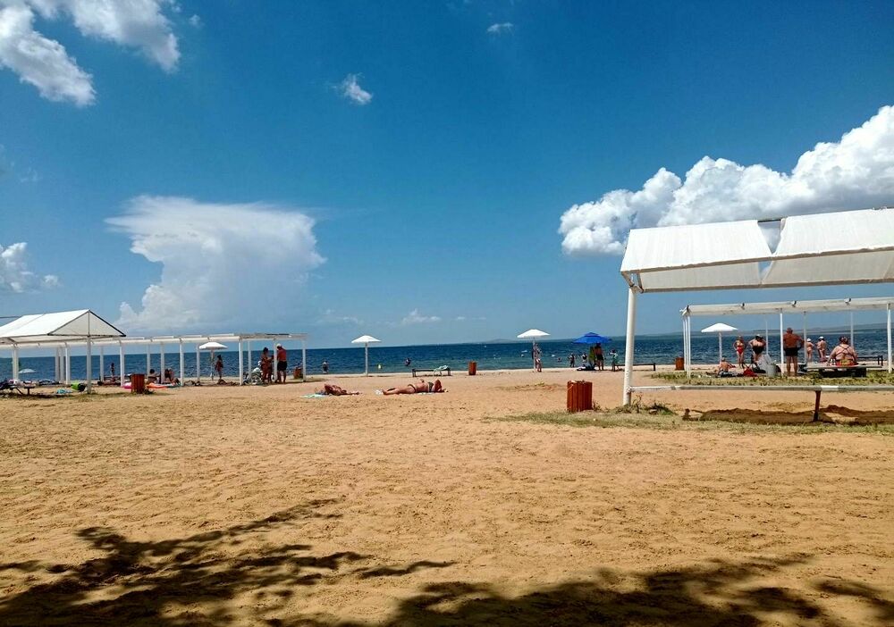 Центральный пляж Сенного — один из самых удобных на побережье. Он занимает площадь более 3000 квадратных метров, хорошо оборудован, имеет пологий вход в воду и подходит для отдыха с детьми. Вода здесь прогревается раньше, чем в Чёрном море, что делает купание комфортным уже в июне.