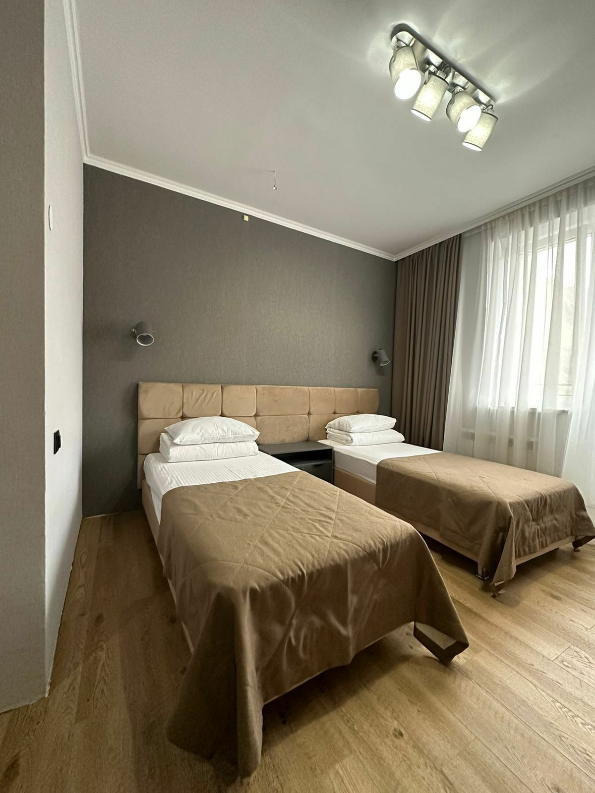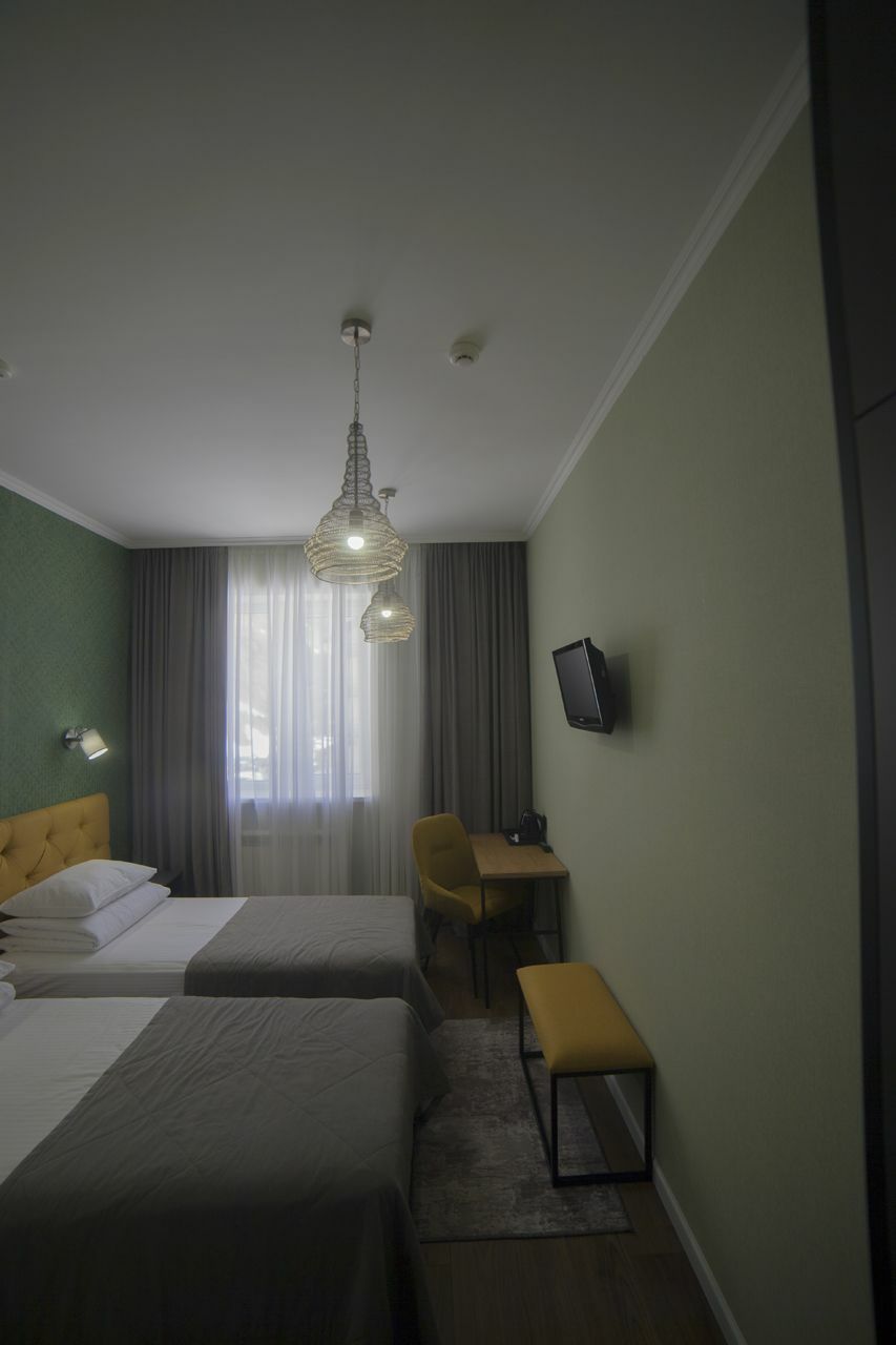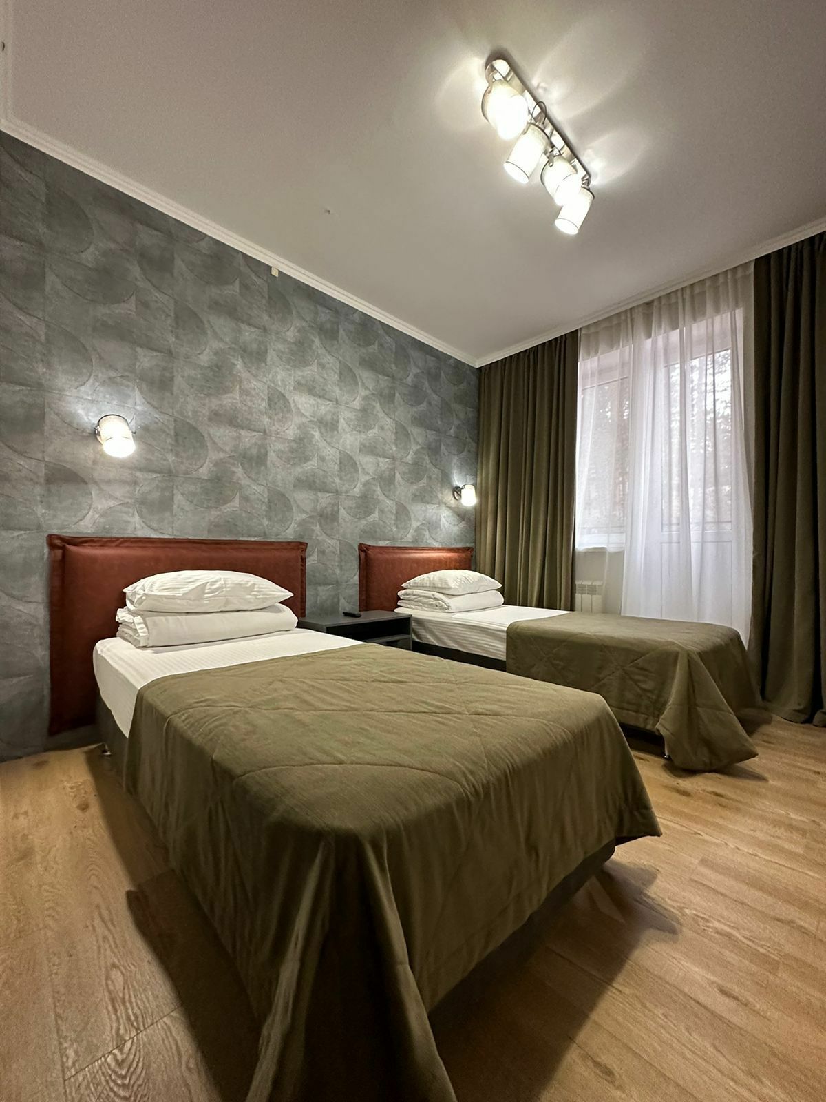 Отличная гостиница, отличные сотрудники, неплохая столовая. Повезло, что напротив гостиницы есть бесплатная парковка, метров 70 до гостиницы. Номера видно после ремонта, прям огонь номер, ванная, сан узел, все чистое. Вынос мусора ежедневно, так же полы протирают. Столовая нормальная, цена как и на всех курортах схоже ресторану. Есть сушилка для снаряжения. Есть не большой спорт зал. Кстати рядом, так же метров 70 пройти склон для ватрушек. Рекомендую!!!
