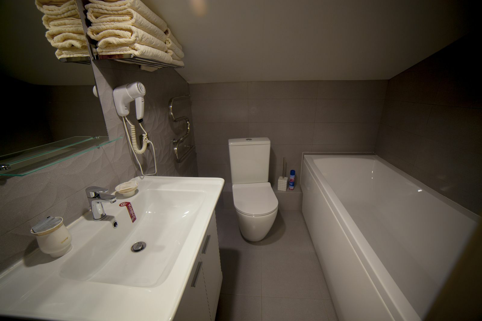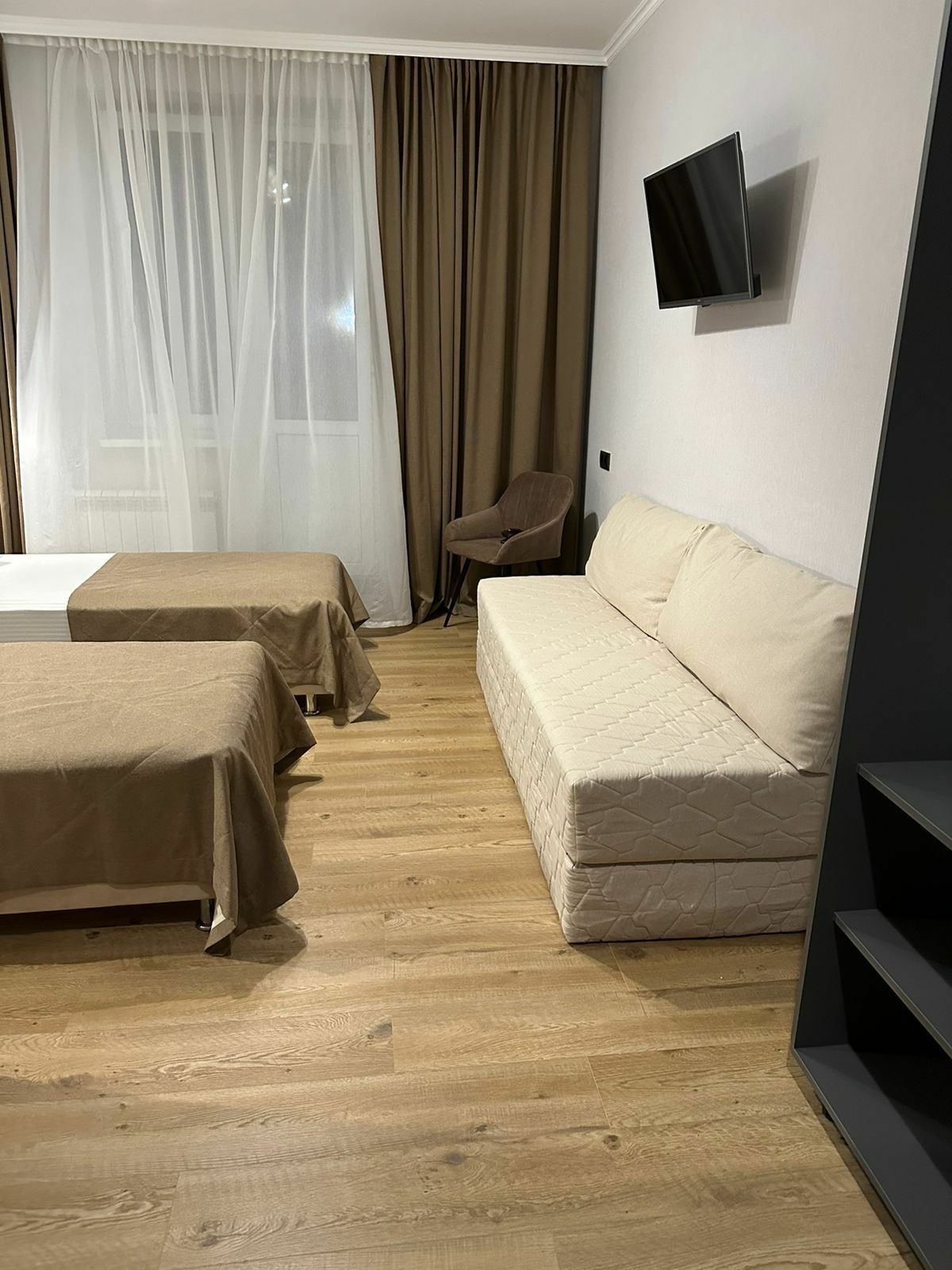 Всем привет. Рекомендую. Завтрак включен, очень вкусно, разнообразно, сытно и много! Вид из окна красивый. Приветливый персонал, все подсказывают, до канатки 5 минут пешком. Рядом много кафе. Жили в номере с санузлом на три комнаты, но очереди в санузел не было. Вода еле теплая, и шумоизоляция плохая. А так всё норм.