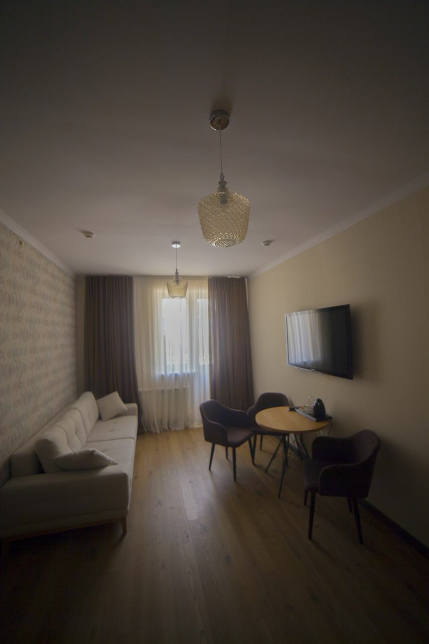 Гармоничный интерьер и доброжелательный персонал располагают к отдыху. Пообщаться с друзьями или посидеть вечером с книгой вы можете в просторном холле на удобных мягких диванах.
