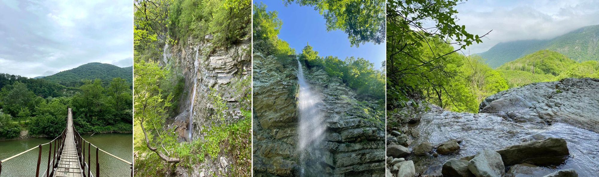 От железнодорожной станции до водопада примерно два километра по пересечённой местности. Путь начинается с перехода через железную дорогу и подвесной мост через реку Туапсе. Затем нужно повернуть налево и двигаться вдоль реки по узкой и заросшей тропе. Через несколько минут тропа приведёт к месту слияния реки и ручья Казённого, где нужно повернуть направо и следовать вдоль ручья к водопаду.